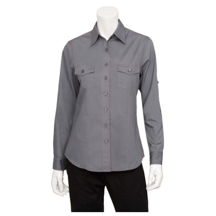 Chef Works WPDS-GRY-S Women's Shirt Roll-up Long Sleeves With Button Tab 2-button Cuffs