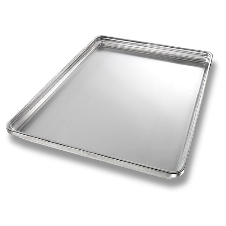 The Chicago Metallic 30850 StayFlat® Sheet Pan Half Size 12-13/16" X 17-13/16" X 1" is a durable and versatile choice for professional and home bakers alike. Constructed from 18-gauge aluminum, this sheet pan is designed for consistent heat distribution, helping to achieve perfectly baked goods every time. The StayFlat® technology ensures the pan remains warp-resistant, providing long-lasting reliability and performance. With its half-size dimensions of 12-13/16" x 17-13/16" x 1", this pan fits seamlessly into any standard oven, making it ideal for small to medium-sized baking tasks. The band in rim design adds structural integrity, reducing the risk of warping under high temperatures. As a plain pan, it offers a simple yet functional surface for a variety of baking needs. This sheet pan is NSF certified, attesting to its adherence to public health and safety standards, and is made in the USA with global materials, ensuring quality craftsmanship and materials. Packed by the dozen, the Chicago Metallic 30850 StayFlat® Sheet Pan is perfect for commercial kitchens, bakeries, and catering services, offering a balance of durability and performance for various baking applications.