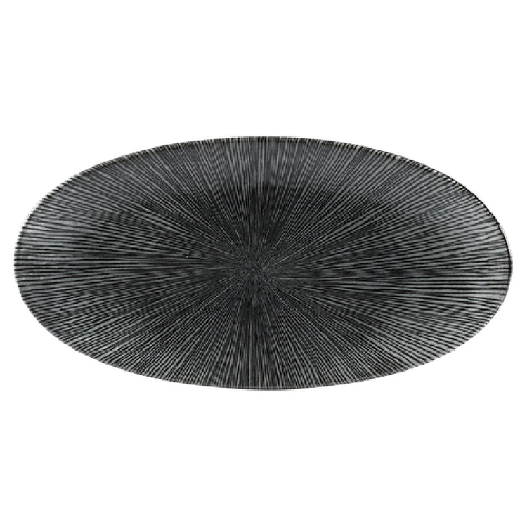 The Churchill China AGBLOV301 Chef's Plate is a meticulously crafted ceramic dining piece measuring 11-3/4 inches by 5-7/8 inches in an elegant oval shape. This product forms part of the Churchill® Super Vit collection, known for its exceptional durability and sophisticated design, making it a suitable choice for a range of culinary environments, from high-end restaurants to casual dining. The plate features the Studio Prints® Agano pattern in a striking black color, offering a unique aesthetic appeal that complements various table settings. Notably, this Chef's Plate is microwave and dishwasher safe, ensuring convenience for professional chefs and home cooks alike by facilitating easy heating and cleaning processes. The combination of aesthetic design and practical features makes the AGBLOV301 an excellent addition to any kitchenware collection. As a UK stocked item, it is available for order per case only, ensuring that restaurant-grade quality is accessible to different market segments, including catering services and hospitality industries. The Churchill China AGBLOV301 Chef's Plate exemplifies the perfect blend of style, functionality, and durability, providing a versatile solution for serving a variety of dishes with elegance and ease.