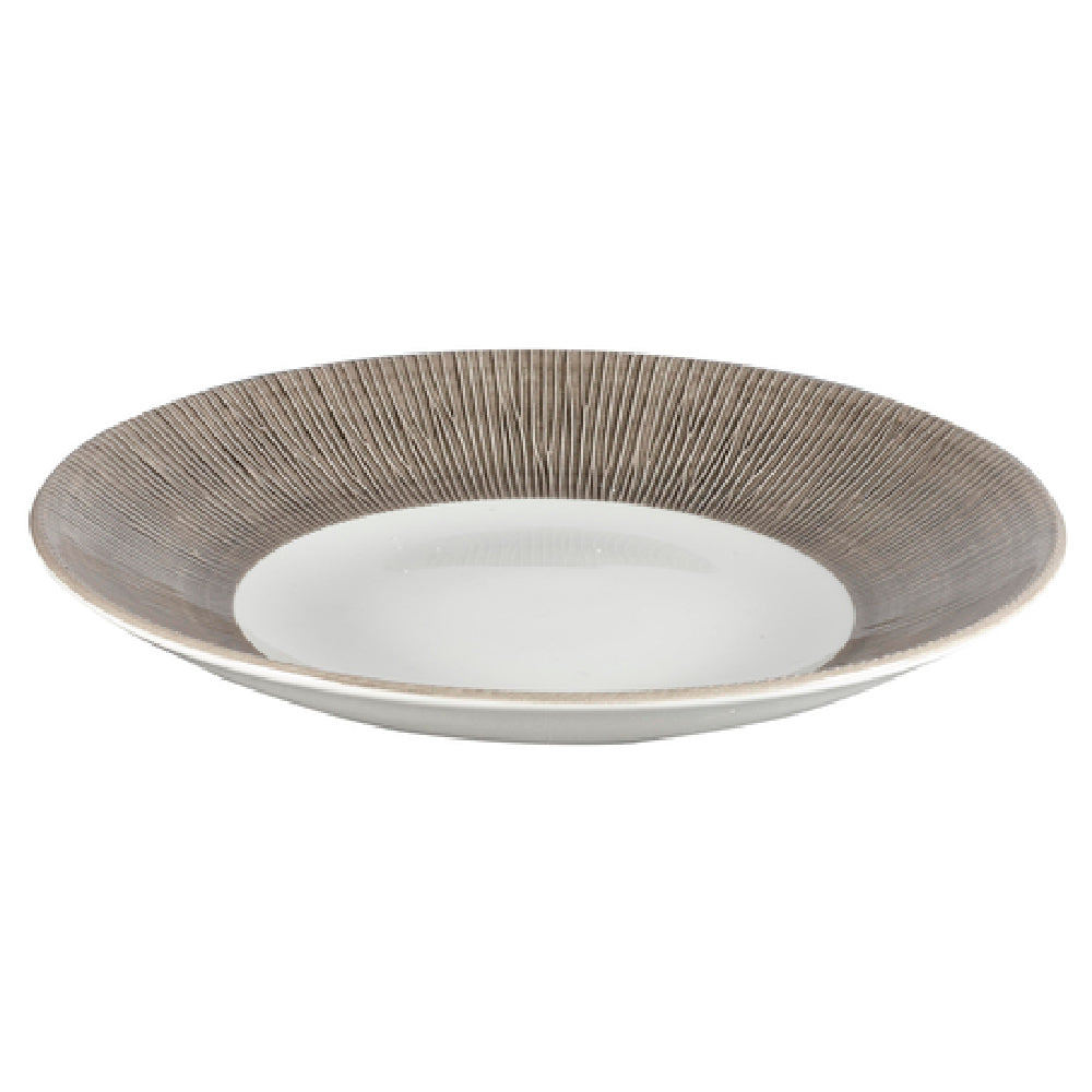 The Churchill China DUBALD271 Plate is a meticulously designed ceramic dining ware piece that measures 11 inches in diameter and 1-7/16 inches in height. This round plate is distinguished by its deep coupe form, offering a versatile option for various culinary presentations. The embossed rim adds an elegant touch to its aesthetic appeal, making it suitable for both casual and formal dining settings. Crafted from Churchill® Super Vit material, it ensures durability and high resistance to everyday wear and tear. The Bamboo Spinwash pattern in a Dusk finish enhances its visual appeal, creating a sophisticated table setting. This plate is a US-stocked item and is available for purchase per case only, catering to both commercial and residential sectors. Its design and functionality make it an excellent choice for restaurants, hotels, and catering services seeking reliable and stylish dinnerware. Furthermore, the plate's robust construction and distinct design elements make it a valuable asset for enhancing dining experiences across various market segments within the food service industry. With its blend of elegance and practicality, the Churchill China DUBALD271 Plate stands out as a premium choice for those prioritizing quality and design in their dining presentations.