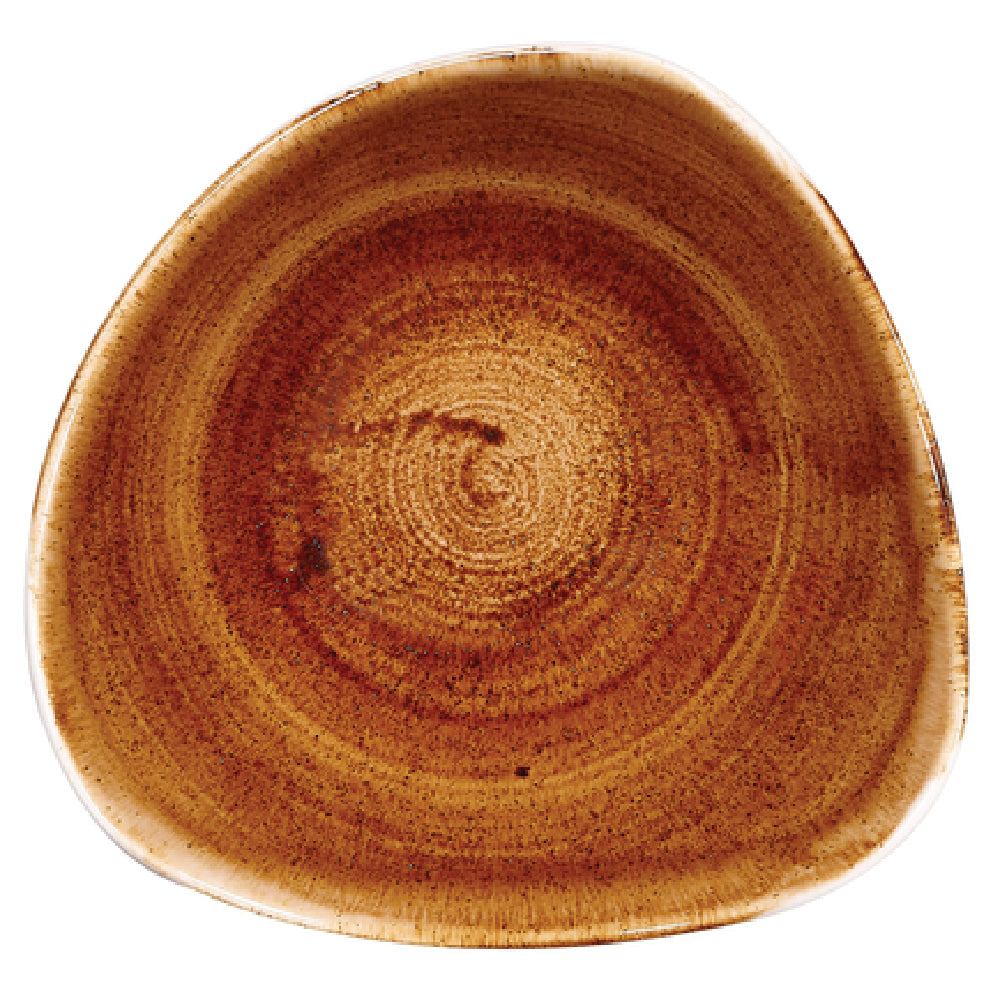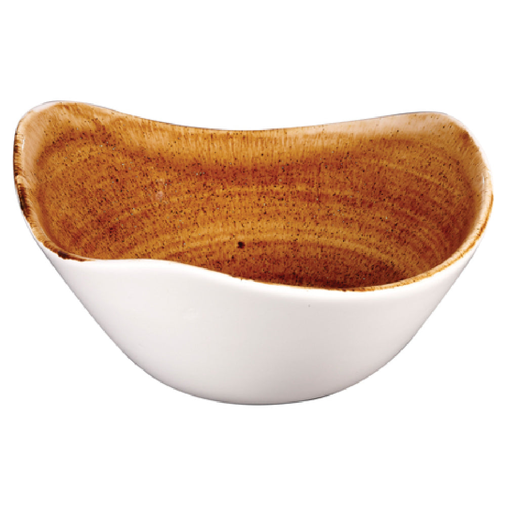 Churchill China PAVCTRB61 Bowl 9 Oz. 6" is an exceptional piece of ceramic craftsmanship designed specifically to cater to various hospitality and culinary sectors. Its triangular shape provides a contemporary twist on traditional dishware, offering a unique aesthetic appeal for presentation-focused environments like upscale restaurants and catering services. With a volume capacity of 9 ounces, it is perfect for serving individual portions of soups, salads, or desserts, striking a balance between size and practical utility. The bowl measures 6 inches, making it compact and easy to handle, yet spacious enough for diverse culinary applications. Constructed with Churchill® Super Vit technology, this bowl boasts enhanced durability and longevity, ensuring it withstands the rigors of professional kitchens. In addition, the eco glazed finish not only enhances its vintage appeal with a Patina Vintage Copper hue but also makes it environmentally friendly. The Stonecast® design adds a rustic charm, appealing to establishments aiming for a vintage or artisan aesthetic. The bowl is both microwave and dishwasher safe, ensuring convenience in fast-paced environments. As a US-stocked item, it ensures quick availability for bulk orders, being sold per case only, making it an ideal choice for large-scale operations in the culinary industry.