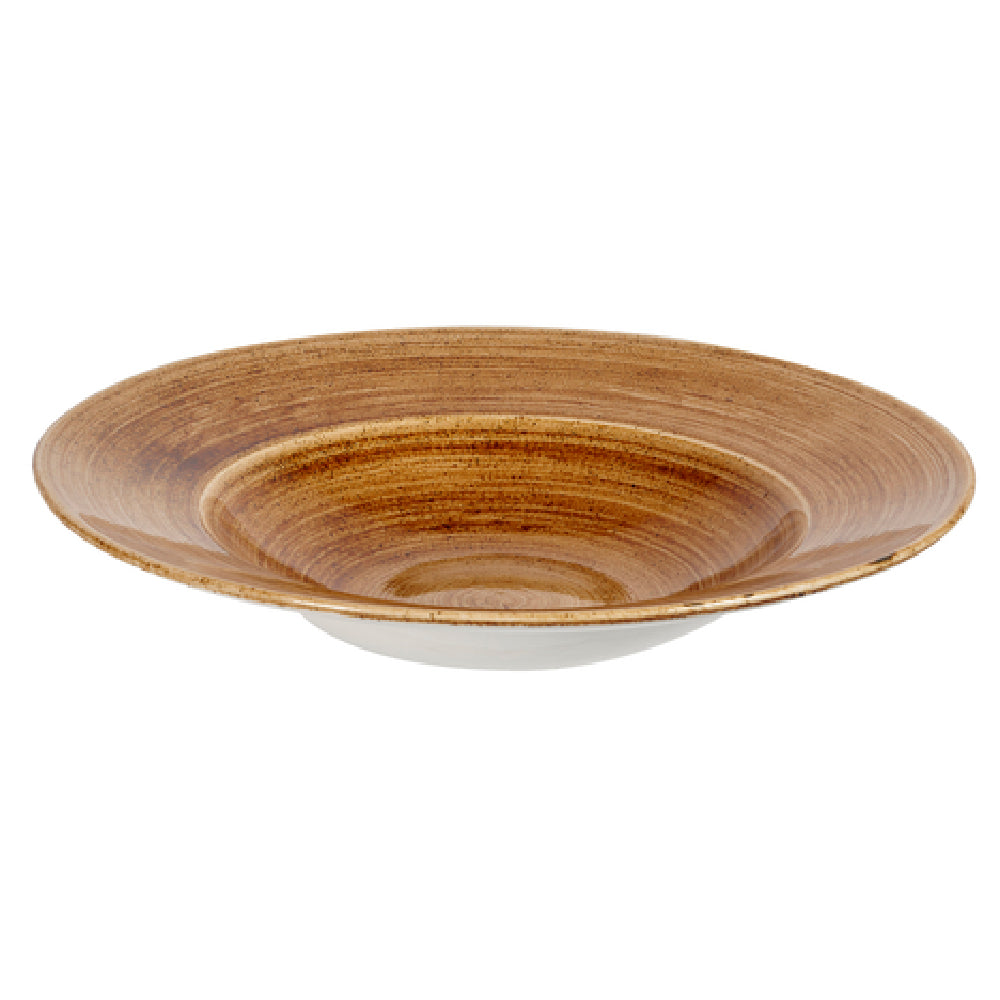 The Churchill China PAVCVWBL1 Bowl 16-1/2 Oz. 11" Dia. is a meticulously crafted ceramic bowl, perfect for diverse culinary settings. Its dimensions include a capacity of 16-1/2 ounces and a diameter of 11 inches, making it suitable for serving a variety of dishes. The bowl features a round shape with a wide rim, enhancing both its aesthetic appeal and functional utility in presentation. Notably, this bowl is microwave and dishwasher safe, ensuring ease of use and maintenance in fast-paced environments. The eco glazed finish highlights its commitment to sustainability without compromising on quality. As part of the Churchill® Super Vit collection, the bowl exemplifies durability and is known for its exceptional chip resistance. The Stonecast® line, to which this bowl belongs, offers a Patina design in the Vintage Copper color, providing a unique and stylish look that complements any table setting. Stocked in the US for convenient availability, this product is available for order per case only, catering to the needs of restaurants, hotels, and catering services that demand both elegance and durability in their tableware.