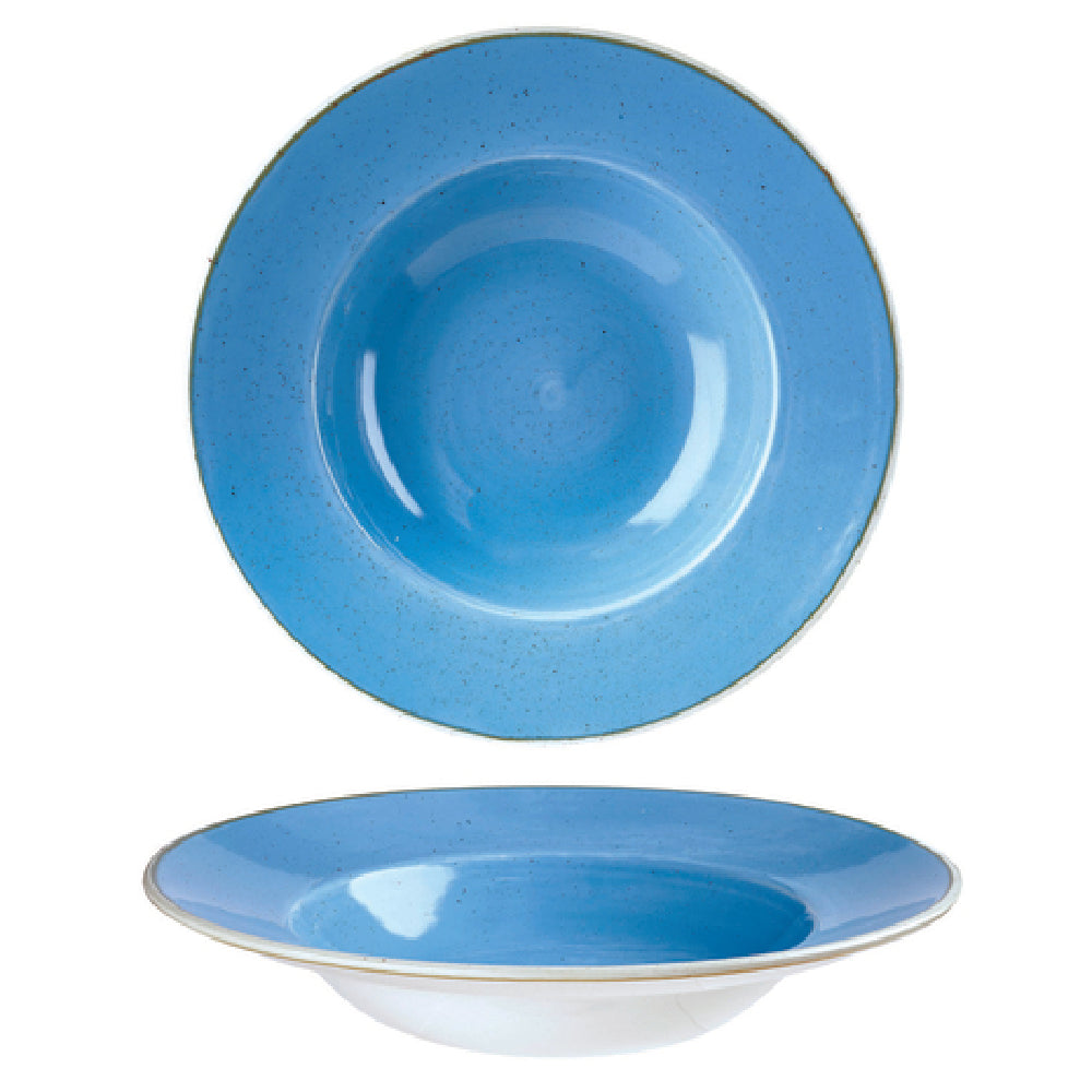 Churchill China SCFSVWBL1 Bowl 16-1/2 Oz. 11" Dia. is a large, round ceramic bowl that features a wide rim, making it suitable for various dining and serving contexts. With a capacity of 16-1/2 ounces and an 11-inch diameter, it provides ample space for serving both individual and shared dishes. The bowl is crafted using Churchill® Super Vit technology, ensuring durability and strength for everyday use in busy settings such as restaurants, cafes, and hotels. Its Stonecast® design, finished in a Cornflower Blue eco glazed finish, adds a touch of elegance to any table setting. The bowl's microwave and dishwasher-safe properties make it convenient for fast-paced environments, offering ease of use and maintenance. This product is available as a US stocked item and is sold per case, catering to bulk purchase needs of food service establishments. The Churchill China SCFSVWBL1 Bowl combines functionality with aesthetic appeal, meeting the diverse demands of the hospitality industry while providing a unique dining experience.