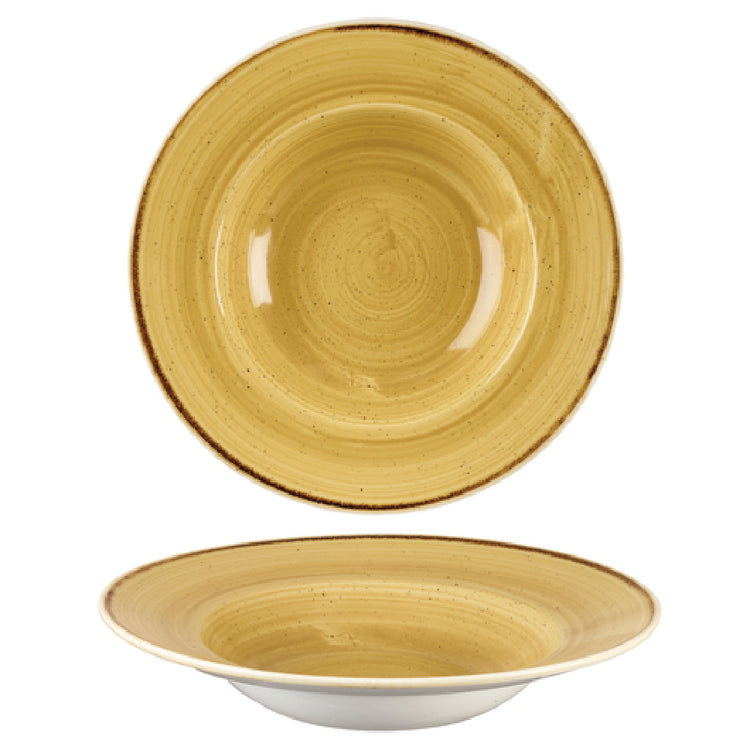 The Churchill China SMSSVWBL1 Bowl 16-1/2 Oz. 11" Dia. is a large, round serving solution designed with a wide rim, making it an aesthetically pleasing yet practical choice for various food service settings. This bowl, constructed from durable ceramic, offers a generous volume of 16-1/2 ounces and an 11-inch diameter, making it suitable for a range of culinary presentations from appetizers to main courses. Its microwave and dishwasher-safe features ensure ease of use and maintenance, catering to the fast-paced demands of commercial kitchens and home use alike. The eco-glazed finish enhances its appeal, adding a layer of sustainability to its design. Part of the esteemed Churchill® Super Vit and Stonecast® collections, this bowl is presented in a striking Mustardseed Yellow, enhancing visual appeal and dining ambiance. As a US-stocked item, it is available for order by case only, ensuring readiness for bulk purchase and distribution. This product's unique combination of design, functionality, and color caters to diverse segment markets including restaurants, catering services, and hospitality industries seeking reliable and stylish servingware.