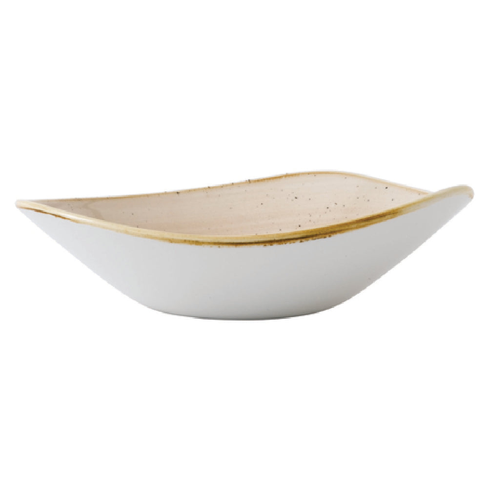 The Churchill China SNMSTRB91 Bowl, with a capacity of 21 oz. and measuring 9-1/4 inches, is a versatile piece of dinnerware designed to meet the needs of various market segments within the hospitality and food service industries. Its unique triangular shape coupled with a rolled edge provides a distinctive aesthetic appeal, enhancing table presentation in both casual and formal dining settings. Crafted from ceramic and featuring an eco glazed finish, this bowl ensures durability and an eco-friendly touch. The Churchill® Super Vit and Stonecast® technologies used in its construction offer enhanced strength and chip resistance, making it a reliable choice for high-traffic environments. The bowl is microwave and dishwasher safe, providing practical convenience for fast-paced kitchen operations. This product is stocked in the US and is available for order per case only, ensuring readiness and availability for bulk purchasing. The Lotus design in Nutmeg Cream adds a subtle elegance, seamlessly fitting into various dining themes. Overall, the Churchill China SNMSTRB91 Bowl presents a compelling combination of functionality, durability, and style, making it a valuable addition to any dining collection.