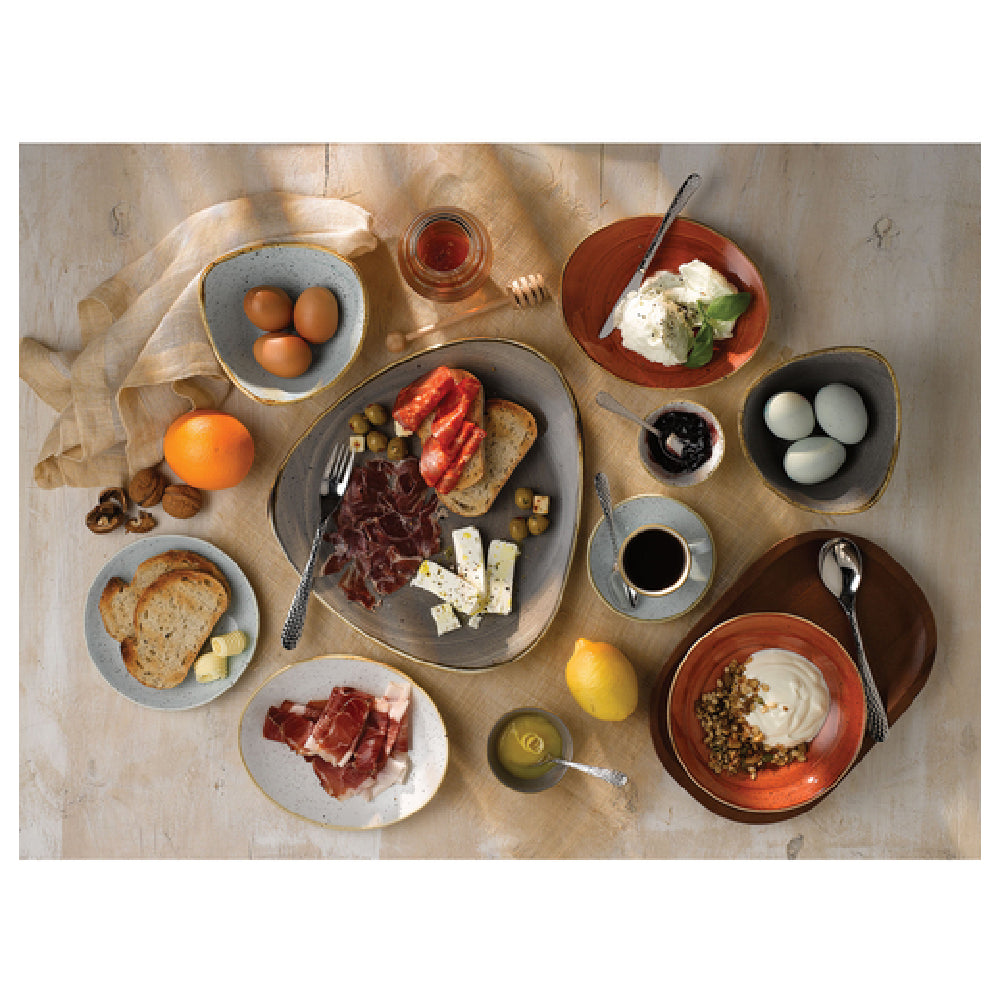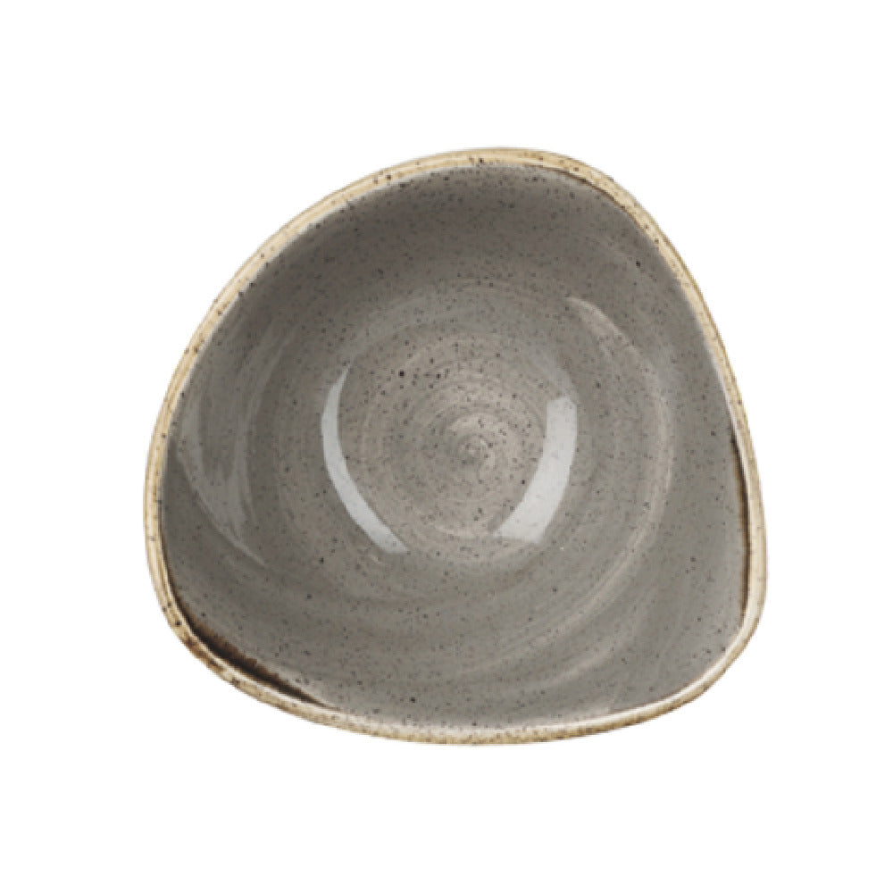 The Churchill China SPGSTRB61 Bowl 9 Oz. 6" is an elegantly designed piece, tailored for those seeking both functionality and aesthetic appeal in their dining experiences. This bowl features a unique triangular shape with a robust 9 oz. capacity, making it a distinguished choice for serving a variety of dishes. Crafted from high-quality ceramic, it showcases a rolled edge that adds durability and a touch of sophistication. The eco-glazed finish not only enhances its visual allure but also underscores its commitment to sustainability. As part of the Churchill® Super Vit collection, this bowl is designed for both microwave and dishwasher safety, ensuring convenience and ease of use in busy kitchen environments. The Stonecast® series in Peppercorn Grey offers a rustic yet contemporary look, ideal for upscale dining establishments aiming to impress their patrons. As a US stocked item, it is readily available for order by case only, catering to the needs of commercial settings such as restaurants and catering services. The Churchill China SPGSTRB61 Bowl is a versatile and reliable choice, merging practical design with exceptional craftsmanship to deliver a product that meets the highest standards of performance and style in the culinary industry.