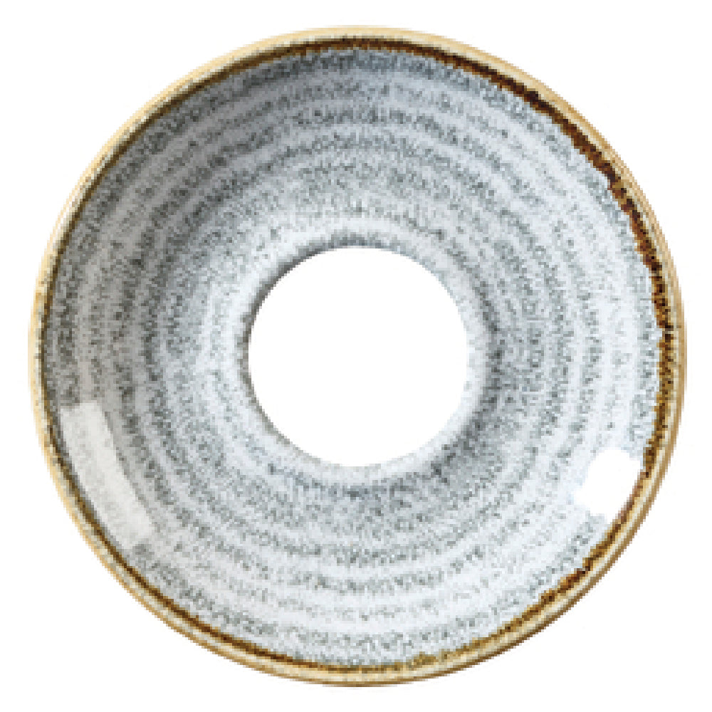 The Churchill China SPSGESS 1 Espresso Saucer is a premium ceramic dish, distinguished by its 4-1/2" diameter, crafted for both microwave and dishwasher safety, making it a versatile addition to any coffee service setting. This saucer features an eco-glazed finish that not only enhances its aesthetic appeal but also contributes to its environmentally conscious production. As part of the Churchill® Super Vit, Studio Prints® collection, this saucer embodies the Homespun design, presented in an elegant stone grey, perfect for contemporary or rustic dining atmospheres. Its durability and style make it suitable for cafes, restaurants, and hospitality venues that value both function and form in their tableware. The piece is stocked in the US, facilitating quick and reliable procurement, and is available for order per case, accommodating bulk purchasing needs. Its integration of practical features and sophisticated design elements positions the Churchill China SPSGESS 1 Espresso Saucer as an ideal choice for establishments seeking to elevate their espresso service with high-quality, stylish tableware.