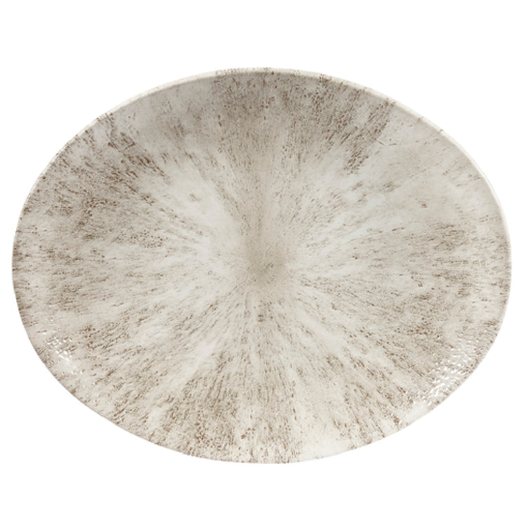 The Churchill China STAGOP121 Plate 12-1/2" x 10" Oval is a meticulously crafted piece of dinnerware designed for both professional and home use. This plate features an oval coupe shape with a rolled edge, providing durability and elegance suitable for various dining environments. With its dimensions of 12-1/2 inches in length and 10 inches in width, it offers ample space for presenting a wide range of culinary creations. The plate is crafted from premium ceramic, ensuring longevity and resistance to wear. It is microwave and dishwasher safe, making it a practical choice for busy kitchens. The eco-glazed finish not only enhances its aesthetic appeal but also contributes to its eco-friendly attributes. Churchill® Super Vit technology ensures the plate's strength, making it ideal for high-demand settings. Part of the Studio Prints® collection, this plate is available in the Orbit design, showcasing a sophisticated Stone and Agate Grey color scheme. This particular model is a US stocked item, and orders are placed per case only, catering to bulk purchase needs in the hospitality or catering sectors. Its combination of style, durability, and practicality makes it a valuable addition to any dining setup.