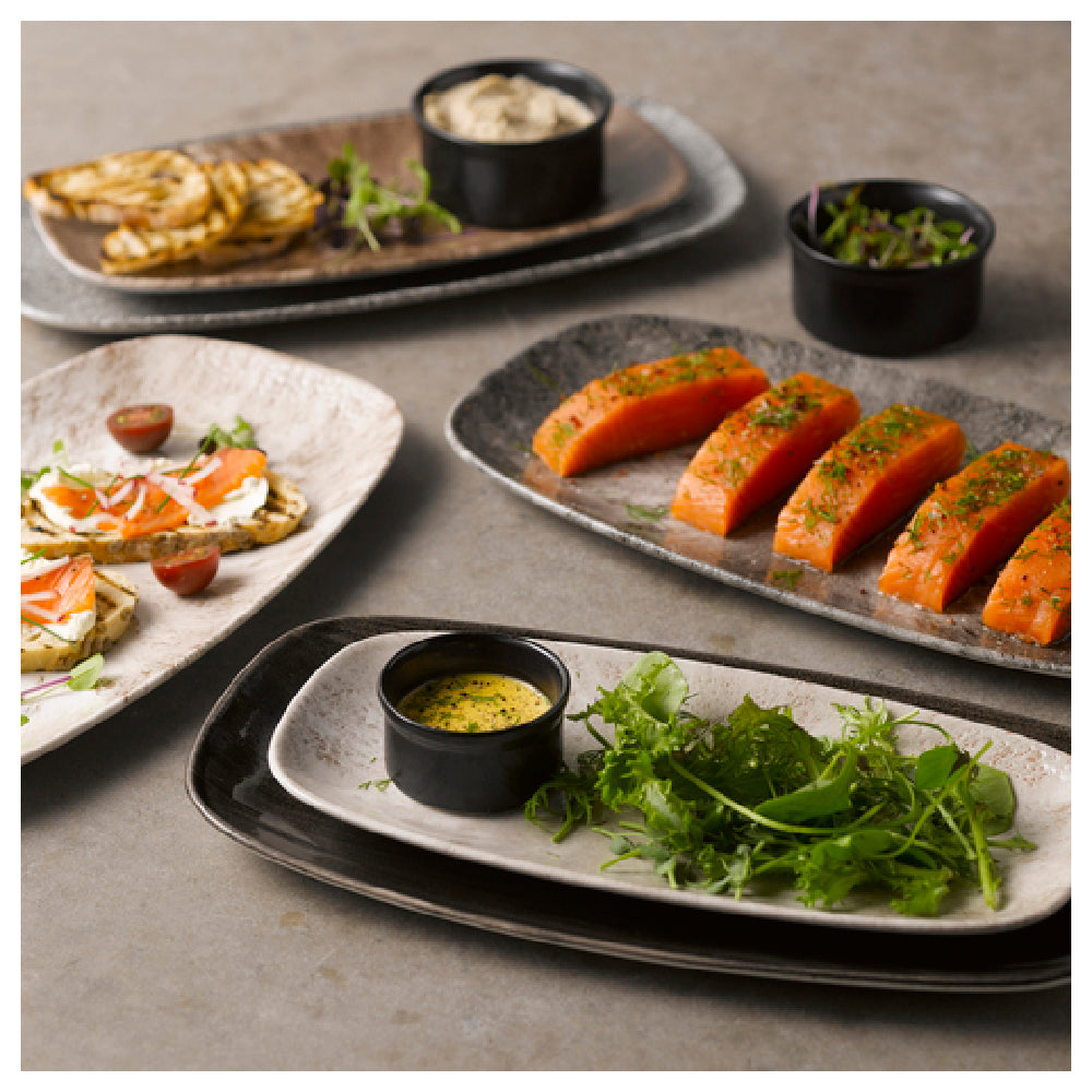 The Churchill China STAGXO141 Chef's Plate is an oblong ceramic serving piece measuring 13-7/8 inches by 7-3/8 inches, designed to enhance culinary presentation. This plate features a rolled edge, which provides both aesthetic appeal and durability. Its eco glazed finish not only adds a touch of elegance but also ensures a sustainable production process. This particular model is part of the Churchill® Studio Prints® collection, available in a sophisticated Stone, Agate Grey color, making it a versatile addition to any table setting. The STAGXO141 Chef's Plate is microwave and dishwasher safe, offering practicality for busy kitchens and ensuring ease of use and maintenance. Available in US-stocked inventory, this plate is sold in cases of six, catering to the needs of professional chefs and restaurateurs looking to maintain consistency in their dining experiences. Its design and functionality make it an ideal choice for gourmet restaurants, catering services, and hospitality businesses, providing a high-quality dining solution that combines elegance with practicality. This chef's plate stands out as a reliable and stylish choice for any establishment aiming to elevate their presentation standards.