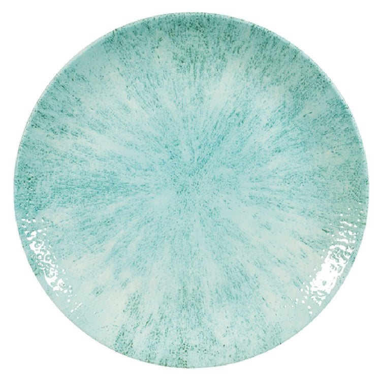 The Churchill China STAMEV101 Plate 10-1/4" Dia. Round is an exceptional piece of tableware that blends functionality with aesthetic appeal. Crafted with a 10-1/4 inch diameter, this round, deep, coupe-style plate showcases a rolled edge that enhances its durability for everyday use, making it suitable for both casual dining and formal settings. Constructed from ceramic, it boasts an eco-glazed finish, contributing to its environmental sustainability. The Churchill® Super Vitrified technology ensures the plate's resilience, making it microwave and dishwasher safe, ideal for busy food service environments. Part of the Studio Prints® Stone collection, the plate features an Aquamarine color, adding a touch of sophistication to any table setting. Available as a US stocked item, this plate is perfect for restaurants and catering services looking to elevate their presentation with a reliable and stylish choice. It must be ordered per case, which is an efficient option for large-scale operations. The Churchill China STAMEV101 Plate is a versatile and durable choice, meeting the needs of various segments in the hospitality industry by combining practicality with a high-quality design that ensures long-lasting performance and elegance.