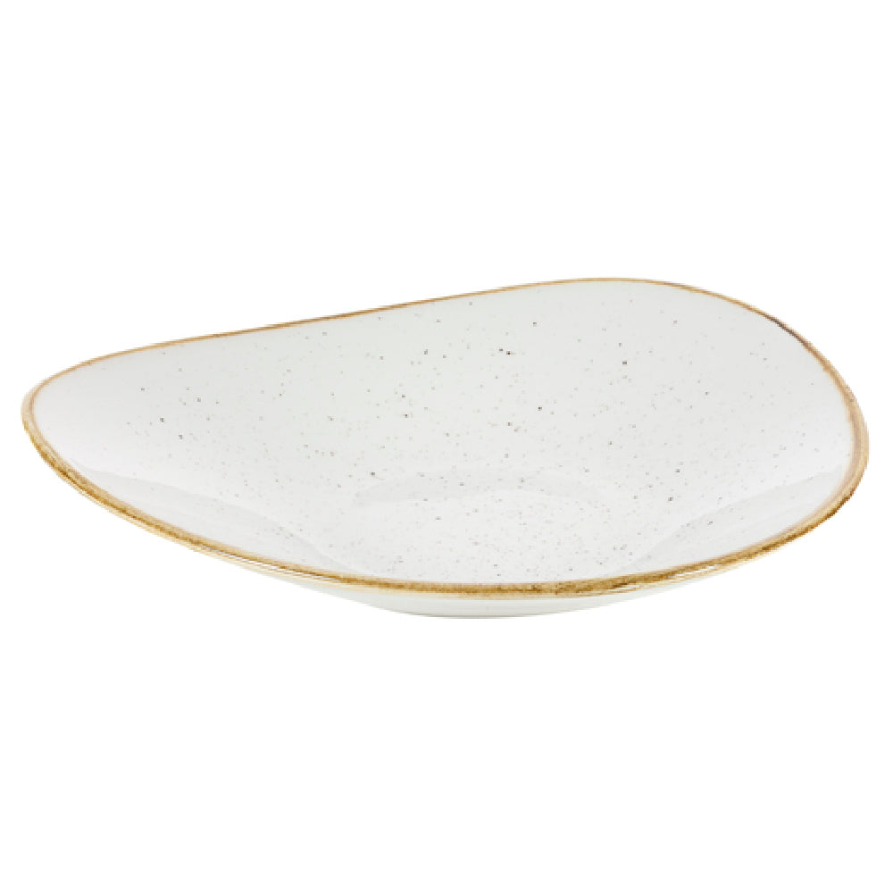 Churchill China SWHSTB231 Bowl 27 Oz. 9-3/8" X 6-1/4" is an elegantly designed, triangular, shallow ceramic bowl that serves as a versatile addition to any dining experience. With a substantial capacity of 27 ounces, it is perfect for serving a variety of dishes, from soups and salads to gourmet presentations. This bowl is skillfully crafted with eco-glazed finish, emphasizing environmental consciousness without compromising its aesthetic appeal. Part of the Churchill Super Vit collection, it ensures exceptional durability and resistance, making it a reliable choice for commercial dining environments. The Stonecast Barley White finish adds a rustic yet sophisticated charm, aligning with modern dining trends. Its dimensions of 9-3/8 inches by 6-1/4 inches make it a suitable fit for diverse table settings, enhancing both the visual and functional aspects of any meal. Importantly, this bowl is microwave and dishwasher safe, facilitating easy use and maintenance. As a US-stocked item, it offers convenience for bulk procurement, available for order per case only, catering to the needs of restaurants, hotels, and catering services seeking to elevate their tableware collections with quality and style.