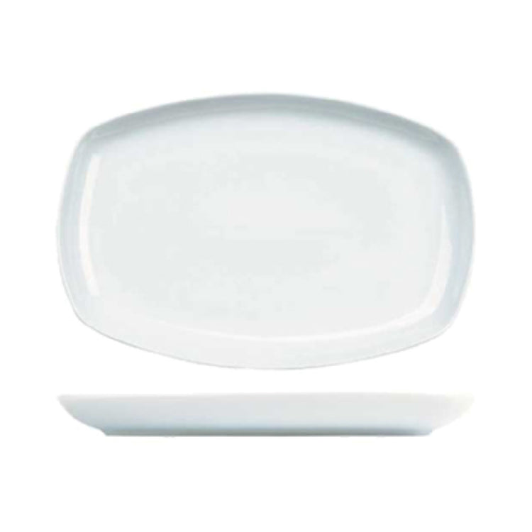 The Churchill China ZCAPRCPM1 Platter 12-1/4" x 8-1/4" Medium is an expertly crafted, medium-sized rectangular platter designed for both durability and elegance. Made from high-quality porcelain, this platter features a rolled edge that enhances its chip resistance, ensuring long-lasting use in various settings. Its glazed finish not only adds a touch of sophistication but also makes it both microwave and dishwasher safe, providing convenience for busy food service environments. Perfect for restaurants, hotels, and catering services, the platter's dimensions of 12-1/4 inches by 8-1/4 inches offer ample space for presenting a variety of dishes, from appetizers to main courses. Part of the Menu, Art de Cuisine collection, this white platter is a versatile addition to any tableware collection, seamlessly blending with different decor styles. This product is US Stocked and is sold in cases of six, making it an ideal choice for businesses looking to maintain a consistent supply of high-quality serveware. The Churchill China ZCAPRCPM1 Platter's combination of style, functionality, and durability makes it a valuable asset for any professional dining establishment.
