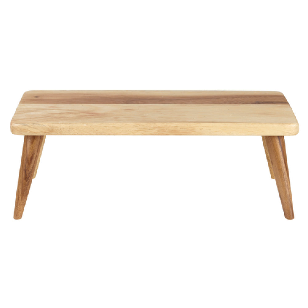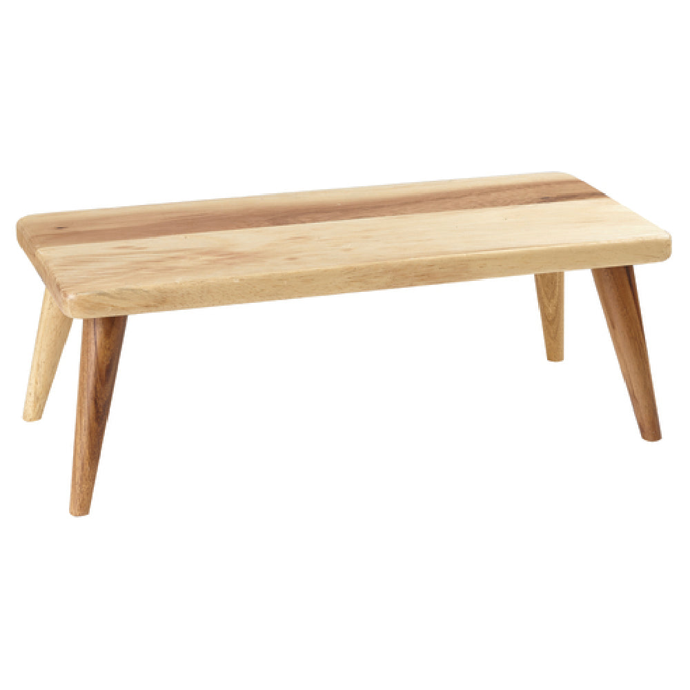 The Churchill China ZCAWLRRS1 Display Stand 16-3/4" x 7-1/4" x 6"H Large is an expertly crafted rectangular stand designed for professional display purposes. With dimensions of 16-3/4 inches in length, 7-1/4 inches in width, and 6 inches in height, it offers ample space for various presentation needs. This large display stand stands out with its four-leg structure, ensuring stability and support for displaying items effectively. As part of the Alchemy® Buffetscape Wood collection, the stand combines aesthetic appeal with practical functionality, suitable for showcasing culinary creations in buffets and catering events. Being a UK-stocked item, it is readily available for quick procurement, catering to the needs of businesses that require reliable and attractive display solutions. The stand is sold in cases of two, making it a practical choice for establishments looking to enhance their display capabilities. This product is particularly valuable for hospitality and catering businesses seeking to present their offerings in a refined and organized manner, ensuring that dishes are highlighted effectively to impress guests and enhance dining experiences.