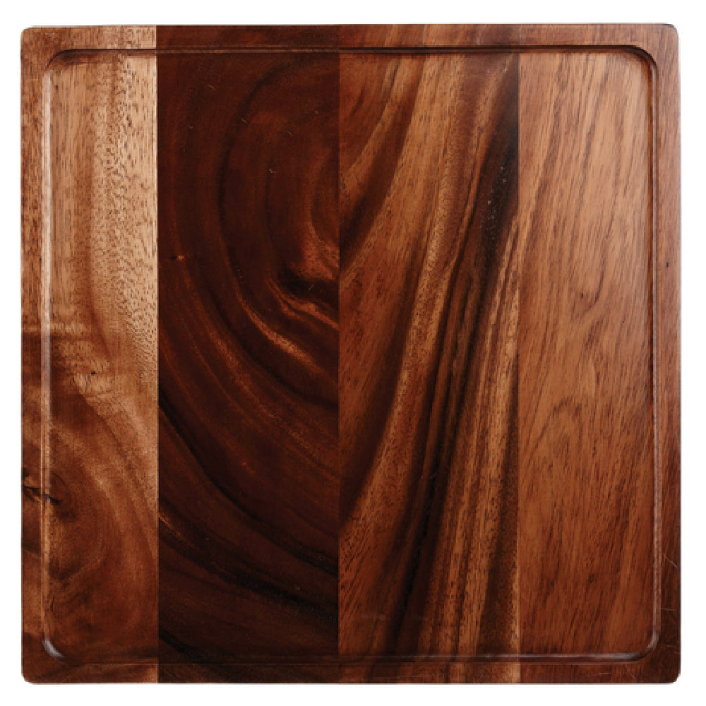 The Churchill China ZCAWPB111 Presentation Serving Board is a large, square serving board measuring 11-13/16 inches on each side, crafted from high-quality acacia wood. This piece is part of the Art de Cuisine® Wooden Boards collection and is a UK-stocked item, available in cases of four, with orders made per case only. The acacia wood construction not only provides an attractive visual appeal with its natural wood grain patterns but also ensures durability and resilience, making it suitable for both casual and formal dining settings. Its generous size offers ample space for presenting a variety of culinary creations, from artisanal cheeses and charcuterie to freshly baked bread and pastries. The Churchill China serving board stands out in the food service industry for its blend of elegance and practicality, appealing to restaurants, catering services, and home entertainers who value both aesthetics and functionality. Its robust construction and timeless design often make it a preferred choice for professional chefs and hospitality experts who seek reliable and stylish serving solutions.