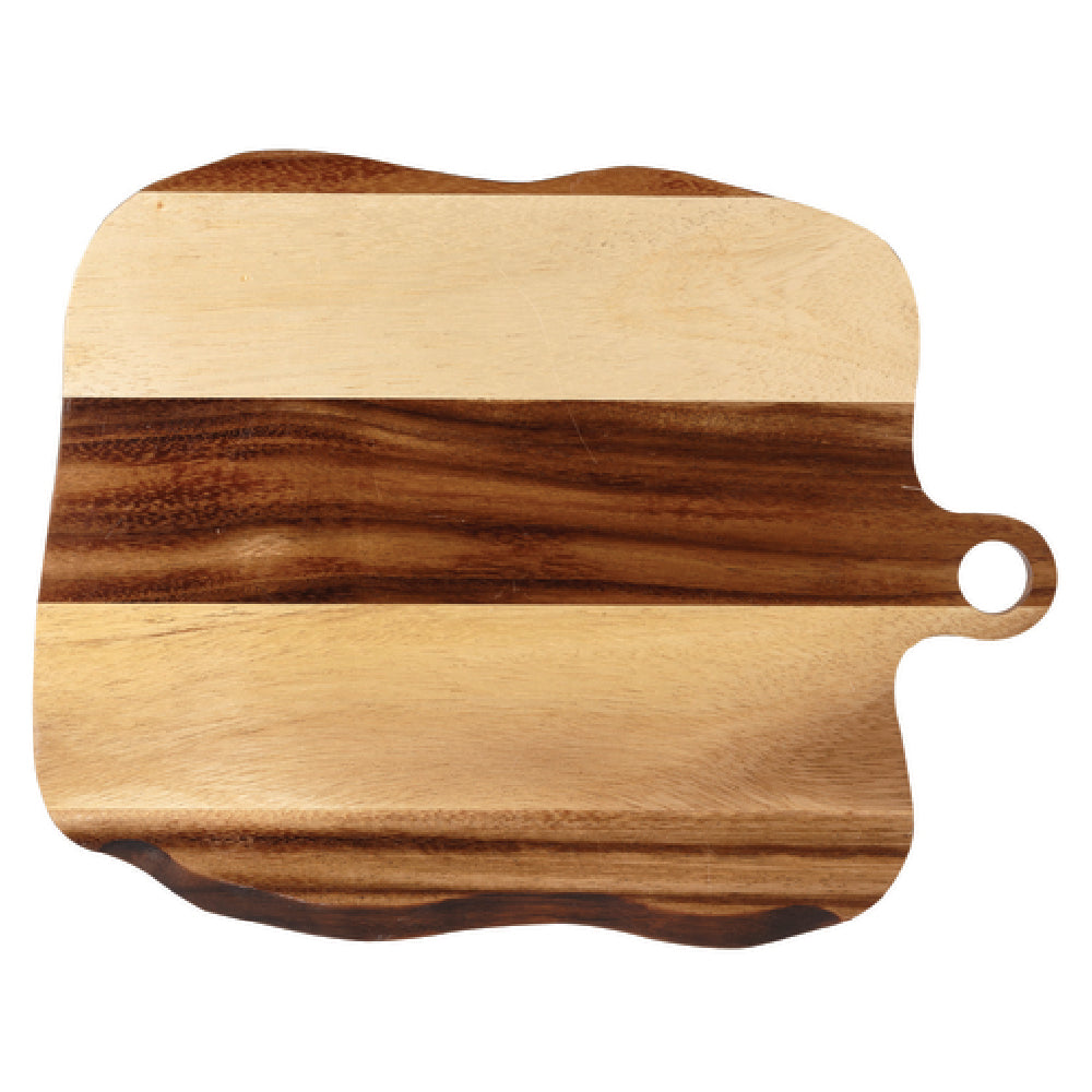 The Churchill China ZCAWSQWB1 Paddle Board 13-3/4" x 10-5/8" O.A. Square is a premium dining accessory, crafted to meet the diverse needs of the food service industry. This paddle board, part of the Art de Cuisine® collection, stands out with its organic square design, offering a modern twist to traditional serving methods. Measuring 13-3/4" by 10-5/8", it provides ample space for presenting a variety of dishes, from artisanal breads to gourmet charcuterie. Its wooden construction not only adds a touch of elegance but also ensures durability and long-lasting use in busy restaurant environments. As a US stocked item, it benefits from reduced lead times, making it a reliable choice for establishments that require swift refills of their serving accessories. Packaged with four boards per case, it is an efficient option for bulk purchasing, facilitating streamlined inventory management for large-scale operations. By integrating this paddle board into their service repertoire, restaurants and catering businesses can enhance their presentation, offering patrons a dining experience that marries functionality with aesthetic appeal.