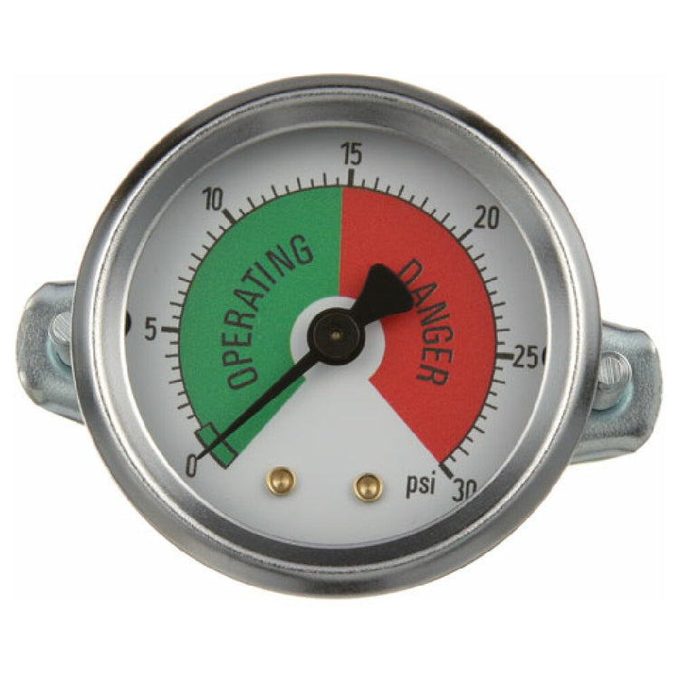 Cleveland FK07168 Pressure Gauge, Size 2" Dia [range 0-30 Psi], Mount 1/8" Mpt Back Clamp Mount., Green Operating Range 0-15 Red Danger Range 15-30, Cleveland, Boiler 0 1 Or 3 Probe Boiler., Steamer Convection Steamer 6cem 6cgm 24-cgp-10bc C, 36cgm300, Pressure Steamer K.