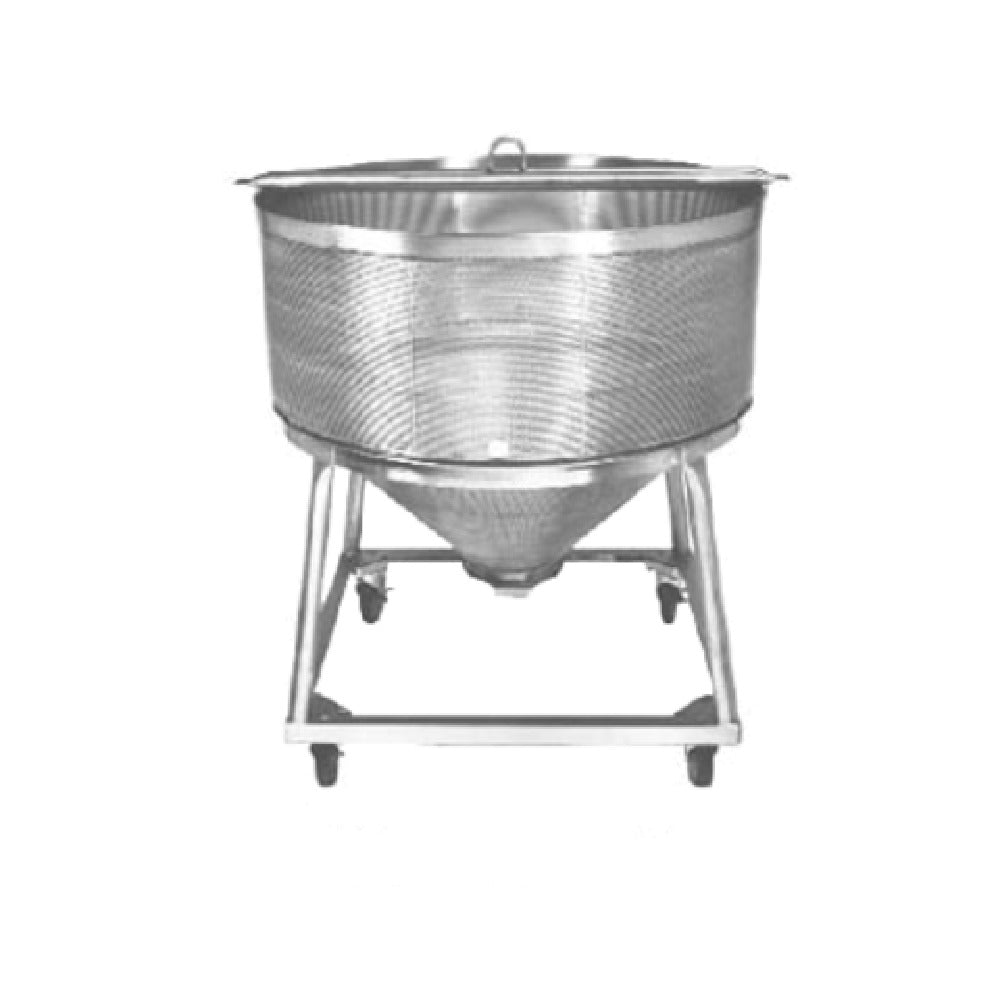 The Cleveland PB-K-60 Pasta Basket For 60 Gallon Kettle - Perforated Basket is a specialized kitchen accessory designed for large-scale culinary operations. Crafted from type 304 stainless steel, this pasta basket ensures durability and resistance to corrosion, making it suitable for demanding food service environments. The basket is engineered with 1/8" perforations, which facilitate efficient water drainage and cooking processes, enhancing the overall quality of pasta preparation. Its innovative cone shape bottom is complemented by a 14" sliding dump gate, providing ease of use in transferring cooked pasta from the basket to serving containers or other kitchen areas. This product is specifically tailored for a 60-gallon kettle, optimizing its usability in large-capacity cooking settings. Ideal for professional kitchens, such as restaurants, catering services, and institutional food preparation facilities, the Cleveland PB-K-60 delivers on performance and reliability. It stands as a valuable tool for chefs and kitchen staff seeking efficiency and precision in pasta cooking and handling practices.