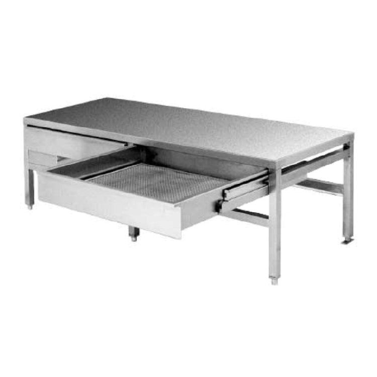 The Cleveland ST42 Equipment Stand Open Base With Sliding Drain Drawer & Splash Screen is a high-quality equipment stand meticulously designed for professional kitchen environments. This stand features a robust open base structure, strategically engineered to offer maximum accessibility and efficient use of space. The addition of a sliding drain drawer enhances its functionality, providing a convenient solution for managing liquid runoff and minimizing mess. A splash screen is integrated into the design, offering added protection against spills and splashes, thus maintaining a clean working environment. Constructed with a stainless steel top and legs, the Cleveland ST42 Equipment Stand guarantees durability and stability, making it a reliable choice for heavy-duty use. The high-grade stainless steel construction not only ensures long-lasting performance but also contributes to the stand's sleek and professional appearance. This stand is ideal for various segments within the foodservice industry, including commercial kitchens, catering services, and hospitality venues, offering a versatile and practical solution for organizing and supporting kitchen equipment. Its thoughtful design and superior build quality provide a valuable asset for any culinary space, enhancing operational efficiency and maintaining high standards of cleanliness and organization.