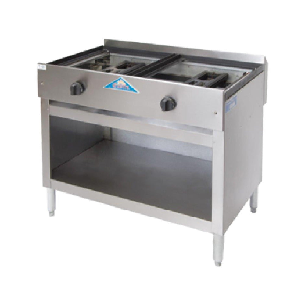 Comstock-Castle, T-2, Taco Range, gas, 37" wide x 25" deep x 32" high, (2) 35,000 BTU burners, open front cabinet base, stainless steel finish, 6" adjustable legs, 70,000 BTU, NSF