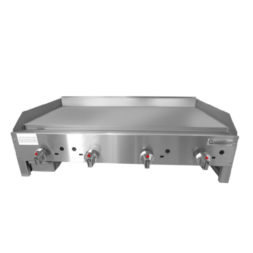 Connerton, CEG-42-M_NAT, Griddle, Budget Series, countertop, gas, 42"W x 23"D x 13.13"H, 1" thick highly polished steel griddle plate, manual controls, 3/4" NPT rear gas connection, stainless steel body, drip pan & fire box, stainless steel front panel, gutter & 3" high splash, 112,000 BTU, NSF, CSA