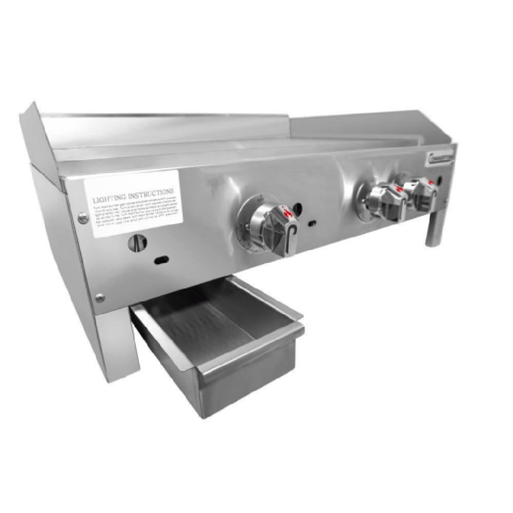 Connerton, CEG-47-T_NAT, Griddle, Budget Series, countertop, gas, 47"W x 23"D x 13.13"H, 1" thick highly polished steel griddle plate, (2) thermostatic controls, 3/4" NPT rear gas connection, stainless steel body, drip pan & fire box, stainless steel front panel, gutter & 3" high splash, 112,000 BTU, NSF, CSA