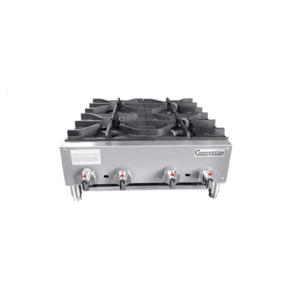 Connerton, CHP-424_NAT, Hotplate, countertop, gas, 24"W x27"D, painted cast iron grates with center-sloped hole, manual controls, 3/4" NPT rear gas connection, fully welded stainless steel body & drip pan, 120,000 BTU, NSF, CSA
