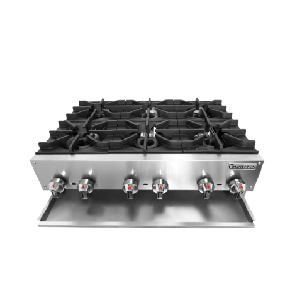 Connerton, CHP-848-F_NAT, Hotplate, floor model, gas, 48"W x 27"D, painted cast iron grates with center-sloped hole, manual controls, 3/4" NPT rear gas connection, fully welded stainless steel body, drip pan, undershelf & adjustable feet, 240,000 BTU, NSF, CSA