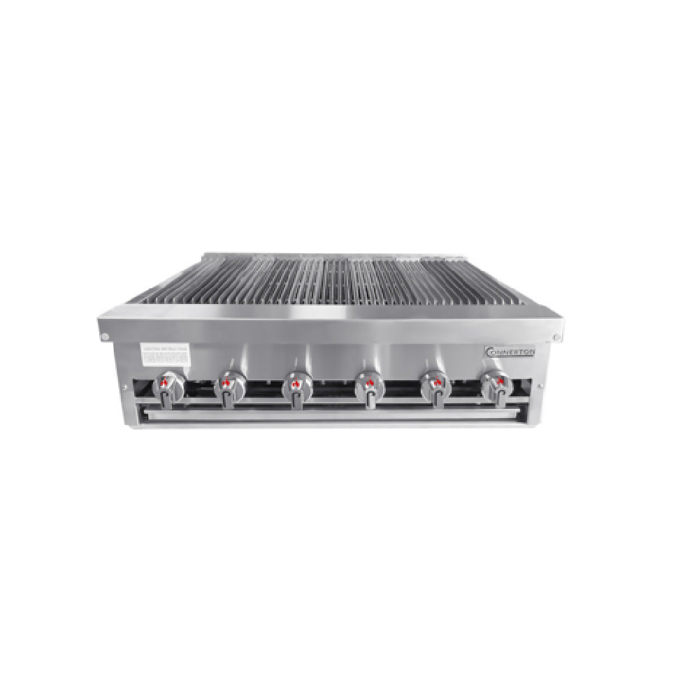 Connerton, CRB-36_NAT, Charbroiler, countertop, gas, 36"W x 29"D, cast iron radiants & top grates with grease flow channels, manual controls, 3/4" NPT rear gas connection, fully welded stainless steel body, fire box, front panel and drip pan, 6 Burners, 150,000 BTU, NSF, CSA