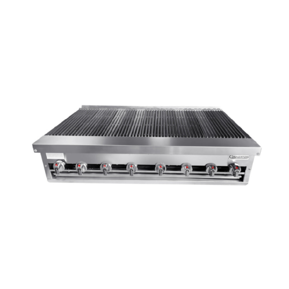 Connerton, CRB-48_LP, Charbroiler, countertop, gas, 48"W x 29"D, cast iron radiants & top grates with grease flow channels, manual controls, 3/4" NPT rear gas connection, fully welded stainless steel body, fire box, front panel & drip pan, 8 Burners, 200,000 BTU, NSF, CSA