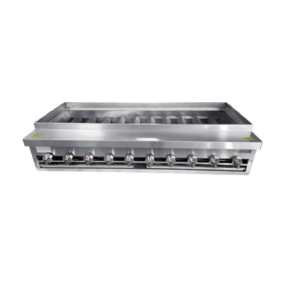 Connerton, KABOB-60_LP, Kabob Broiler, gas, 60"W x 28"D, controlled stainless steel straight burners, spaced every 6”, (10) burners, angled radiants control flare-up, removable crumb tray, 4” stainless Steel adjustable legs, 25,000 BTUs each burner