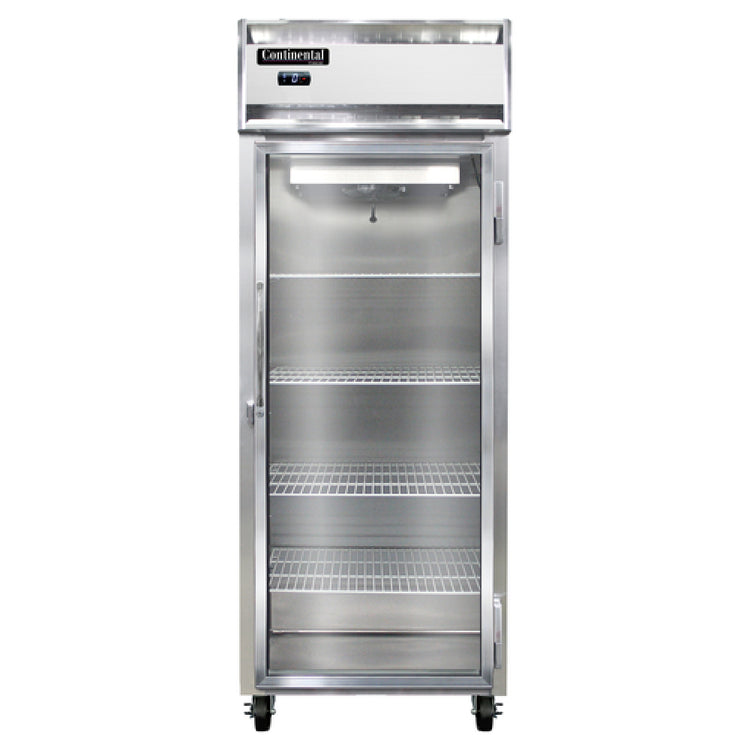 The Continental Refrigerator 1FENGD Extra-Wide Freezer Reach-in 28-1/2"W is a meticulously designed one-section freezer that caters to the demands of commercial kitchens and foodservice industries. This versatile unit features self-contained refrigeration, ensuring efficient cooling performance. The stainless steel front, complemented by an aluminum exterior and interior, enhances durability and ease of maintenance. Its full-height glass door not only provides clear visibility but is also equipped with a cylinder lock, enhancing security. The electronic control with a digital display allows for precise temperature management, with the unit capable of operating as low as -10°F. This model includes a hi-low alarm for added safety, and an electric condensate evaporator, which reduces manual maintenance. Utilizing the R290 Hydrocarbon refrigerant, it is an eco-friendly choice aligning with modern sustainability standards. With a robust 1/2 HP compressor, the Continental Refrigerator 1FENGD is certified by cETLus and NSF, ensuring compliance with rigorous health and safety standards. Measuring 28-1/2" in width, this extra-wide freezer is ideal for establishments that require efficient storage solutions with an emphasis on reliability and performance. Its thoughtful design and advanced features make it a standout choice for any professional foodservice operation.
