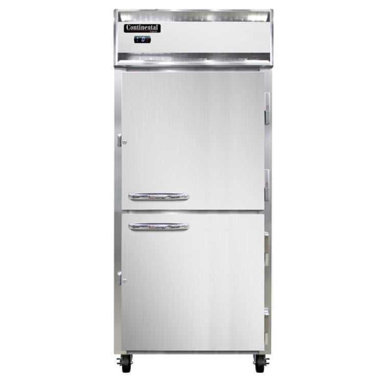The Continental Refrigerator 1FXNSSHD Extra-Wide Freezer Reach-in 36-1/4"W is a high-performance refrigeration unit designed to meet the rigorous demands of commercial settings. With its one-section, reach-in design, this freezer offers a 36-1/4" width, making it extra-wide and suitable for environments requiring ample storage space. Its stainless steel exterior and interior construction ensure durability and easy maintenance, while the standard depth maximizes storage capacity within a compact footprint. Featuring half-height solid doors with cylinder locks, this freezer provides secure access and organization. The electronic control with digital display allows precise temperature management, with the capability to adjust as low as -10°F, ensuring optimal freezing conditions. Equipped with a hi-low alarm and electric condensate evaporator, the unit maintains consistent performance and operational safety. Utilizing R290 Hydrocarbon refrigerant and a 1/2 HP compressor, it delivers efficient and environmentally friendly cooling. The Continental Refrigerator 1FXNSSHD is cETLus and NSF certified, assuring compliance with safety and sanitation standards. This freezer is an excellent choice for food service operations, offering a blend of reliability, efficiency, and advanced features to support diverse refrigeration needs within the industry.