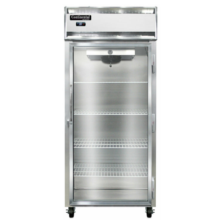 The Continental Refrigerator 1RXSNGD Extra-Wide Refrigerator Reach-in 36-1/4"W is a one-section refrigeration unit, expertly crafted to meet the diverse needs of various industries requiring reliable cooling solutions. This extra-wide refrigerator features a self-contained refrigeration system that uses R290 Hydrocarbon refrigerant, which is known for its environmentally friendly properties. The exterior and interior are made of aluminum, while the front is constructed from stainless steel, ensuring durability and longevity. Its shallow depth design allows for seamless integration into smaller spaces, while the full-height glass door with cylinder lock provides both security and clear visibility of stored items. The electronic control with digital display and hi-low alarm enhances user interaction and operational efficiency. With a 1/3 HP unit, the refrigerator is cETLus and NSF certified, emphasizing its adherence to health and safety standards. The Continental Refrigerator 1RXSNGD is ideal for operations that require a combination of sturdy construction, advanced technology, and efficient use of space, making it a valuable asset in any commercial kitchen or food service environment. Its unique set of features caters to both large-scale industrial needs and smaller businesses seeking reliable refrigeration solutions.