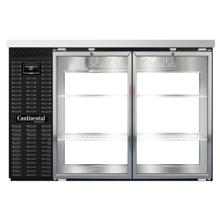 The Continental Refrigerator BB50NGDPT Refrigerated Back Bar Cooler Pass-thru 50"W is an advanced refrigeration solution tailored for bustling bar environments. This unit boasts a 50" width and 34-3/4" height, offering a spacious 16.0 cubic feet of storage, ideal for diverse bottle and can configurations. The cooler's pass-thru design facilitates seamless access from both sides, optimizing efficiency in dynamic service areas. Equipped with four glass doors featuring locks, this model ensures secure storage while displaying contents with clarity. The electronic controller, complete with a digital display and hi-low alarm function, provides precise temperature management for enhanced preservation. Constructed with a robust stainless steel top and a reinforced floor, the cooler promises durability and longevity. Additionally, the black enamel finish exterior complements modern bar aesthetics. The stainless steel interior back and side panels, coupled with epoxy-coated steel shelves, guarantee easy maintenance and hygiene. With a self-contained refrigeration system utilizing R290 hydrocarbon refrigerant and powered by a 1/4 HP motor, it delivers efficient, environmentally friendly cooling. Certified by cETLus and NSF, the Continental Refrigerator BB50NGDPT not only meets high safety standards but also demonstrates exceptional reliability and performance for bar and restaurant operations.
