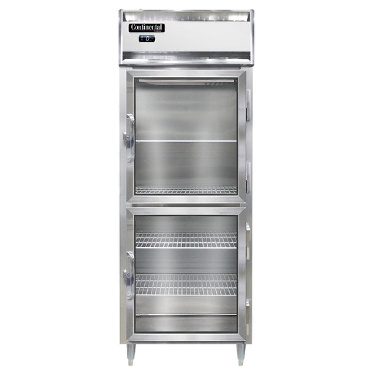 The Continental Refrigerator D1FENSAGDHD Designer Line Wide Freezer Reach-in 28-1/2"W is an advanced refrigeration solution tailored for foodservice environments requiring both efficiency and style. This one-section freezer is engineered with a self-contained refrigeration system and features a stainless steel exterior complemented by an aluminum interior, ensuring durability and ease of maintenance. Its design includes wide half-height glass doors, which provide convenient access and visibility to stored items while maintaining a standard depth cabinet. To enhance security and functionality, the unit is equipped with cylinder locks and an electronic control system with a digital display, along with a hi-low alarm for optimal temperature management. Standing firmly on 6" stainless steel legs, it is both stable and robust. The D1FENSAGDHD utilizes R290 hydrocarbon refrigerant, making it an environmentally friendly choice, while its 1/2 HP motor ensures reliable performance. Certified by cETLus and NSF, this freezer meets rigorous safety and sanitation standards, making it ideal for commercial kitchens, restaurants, and hospitality venues that prioritize sustainability and design. With a width of 28-1/2 inches, the Designer Line Wide Freezer is a sophisticated and practical addition to any professional setting where maintaining food quality and safety is paramount.