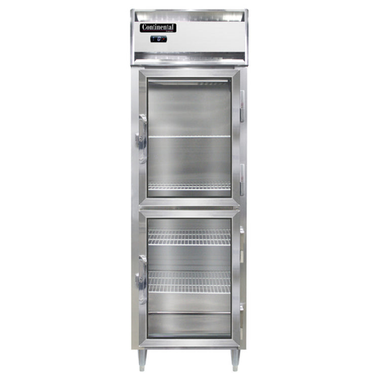The Continental Refrigerator D1FNSSGDHD Designer Line Freezer Reach-in One-section is a high-performance freezer engineered for commercial environments requiring reliable cold storage solutions. Featuring a sleek stainless steel exterior and interior, this freezer is designed for durability and ease of maintenance. Its self-contained refrigeration system ensures efficient cooling, supported by a 1/2 HP compressor that utilizes R290 hydrocarbon refrigerant, known for its eco-friendly properties. The standard depth cabinet is equipped with convenient half-height glass doors, providing easy visibility and access to stored items. Security is enhanced with cylinder locks, ensuring the safety of valuable perishables. The electronic control system with digital display offers precise temperature management with a hi-low alarm feature for added assurance. Sturdy 6-inch stainless steel legs provide stability, making it ideal for bustling kitchen environments. Certified by cETLus and NSF, this freezer adheres to rigorous safety and sanitation standards, making it a reliable choice for restaurants, hotels, and catering businesses seeking both functionality and aesthetic appeal in their cold storage equipment.