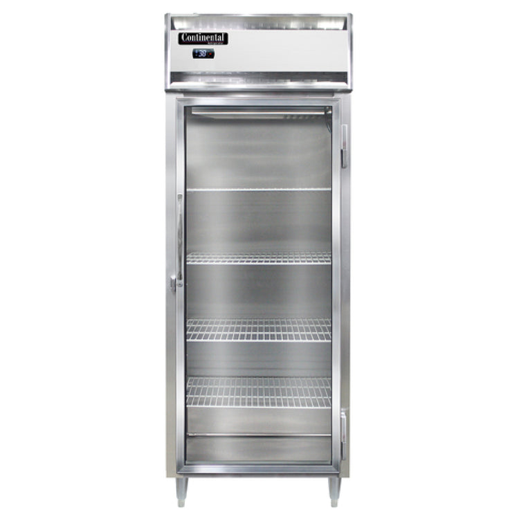 The Continental Refrigerator D1RENGD Designer Line Wide Refrigerator Reach-in 28-1/2"W is a high-quality refrigeration solution tailored for professional kitchens and food service operations. This one-section unit features a self-contained refrigeration system, ensuring efficient cooling within a compact footprint. The external and internal surfaces are crafted from durable aluminum, complemented by a sleek stainless steel front that adds a modern touch to any kitchen space. With a standard depth cabinet, this refrigerator is designed with a wide, full-height glass door for easy visibility and access, secured with a reliable cylinder lock. The electronic control with a digital display provides precise temperature management, enhanced by a hi-low alarm for added security. Supported by sturdy 6" stainless steel legs, the unit ensures stability and ease of cleaning beneath. The D1RENGD utilizes R290 hydrocarbon refrigerant, which is environmentally friendly and energy efficient. Powered by a 1/4 horsepower motor, it maintains optimal cooling performance. Certified by cETLus and NSF, this refrigerator meets high standards for safety and sanitation. Its combination of advanced features and elegant design makes it a perfect fit for various market segments, from upscale restaurants to busy catering facilities.