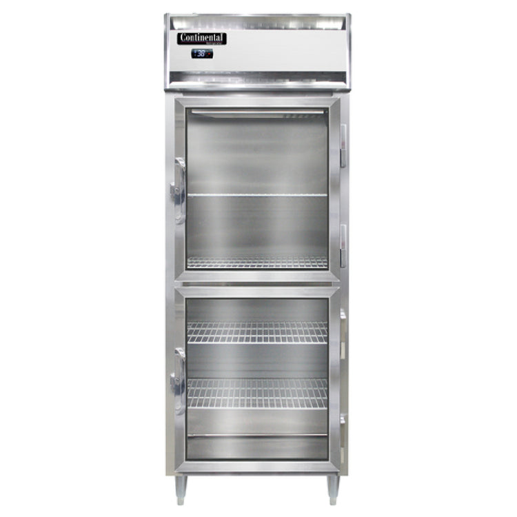 The Continental Refrigerator D1RENGDHD Designer Line Wide Refrigerator Reach-in 28-1/2"W is a precision-engineered, one-section refrigeration solution tailored for businesses demanding both style and functionality. With its self-contained refrigeration system, this unit is equipped with an aluminum exterior and interior, complemented by a sleek stainless steel front. The refrigerator features a standard depth cabinet and wide half-height glass doors, ensuring easy access and visibility while maintaining optimal temperatures. Designed with security in mind, it includes cylinder locks and utilizes electronic controls with a digital display and hi-low alarm for precise temperature management. Standing on robust 6" stainless steel legs, this unit ensures stability and durability. Utilizing R290 hydrocarbon refrigerant and powered by a 1/4 HP motor, it is both environmentally friendly and efficient. Certified by cETLus and NSF, this refrigerator adheres to stringent safety and sanitation standards. Ideal for a variety of settings, such as commercial kitchens and food service establishments, the Continental Refrigerator D1RENGDHD offers a versatile and reliable refrigeration solution with a focus on energy efficiency and modern design aesthetics.