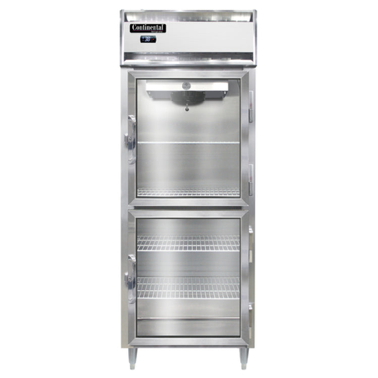 The Continental Refrigerator D1RESNGDHD Designer Line Wide Refrigerator Reach-in 28-1/2"W is a sophisticated refrigeration solution tailored for varied commercial needs with precise technical features. This one-section refrigerator boasts a self-contained refrigeration system, integrating both an aluminum exterior and interior with a stainless steel front for enhanced durability and aesthetics. Its shallow depth cabinet design is complemented by wide half-height glass doors that enhance display capabilities while maintaining product security via cylinder locks. The unit is equipped with an advanced electronic control system featuring a digital display and hi-low alarm to ensure optimal temperature management. Supported by 6" stainless steel legs, the refrigerator offers stability and ease of cleaning. Utilizing environmentally friendly R290 hydrocarbon refrigerant, it operates with a 1/4 HP compressor, ensuring energy-efficient performance. Certified by cETLus and NSF, the D1RESNGDHD refrigerator meets stringent safety and quality standards, making it an ideal choice for various markets within the food service industry, such as restaurants, cafes, and catering businesses, where reliable and efficient refrigeration is paramount. The combination of high-quality materials, advanced technology, and precise engineering makes this refrigerator a valuable asset for maintaining food freshness and quality.