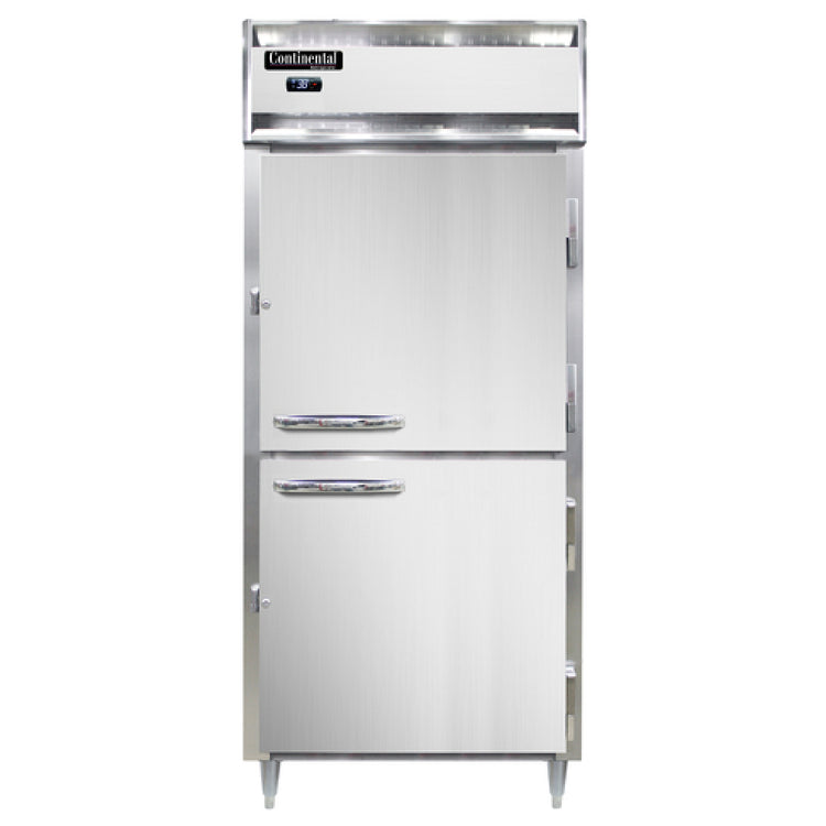 The Continental Refrigerator D1RXNHD Designer Line Extra-Wide Refrigerator Reach-in is a high-quality solution tailored for a variety of commercial refrigeration needs. This reach-in unit, with a 36-1/4" width and a one-section design, is ideal for environments requiring robust and reliable refrigeration. Featuring a self-contained refrigeration system, it boasts an aluminum exterior and interior complemented by a stainless steel front, providing a durable build. Its standard depth cabinet includes wide half-height solid doors, equipped with cylinder locks for security. The refrigerator is controlled electronically with a digital display that includes a hi-low alarm, ensuring consistent temperature monitoring. Supported by 6" adjustable stainless steel legs, it maintains stability and adaptability on uneven surfaces. Utilizing R290 hydrocarbon refrigerant and a 1/3 HP motor, this unit is environmentally friendly and efficient. Certified by cETLus and NSF, it meets rigorous safety and sanitation standards, making it suitable for various segments of the food and hospitality industry. This refrigerator combines form and functionality, offering a sleek design with practical features for optimal performance in professional kitchens.