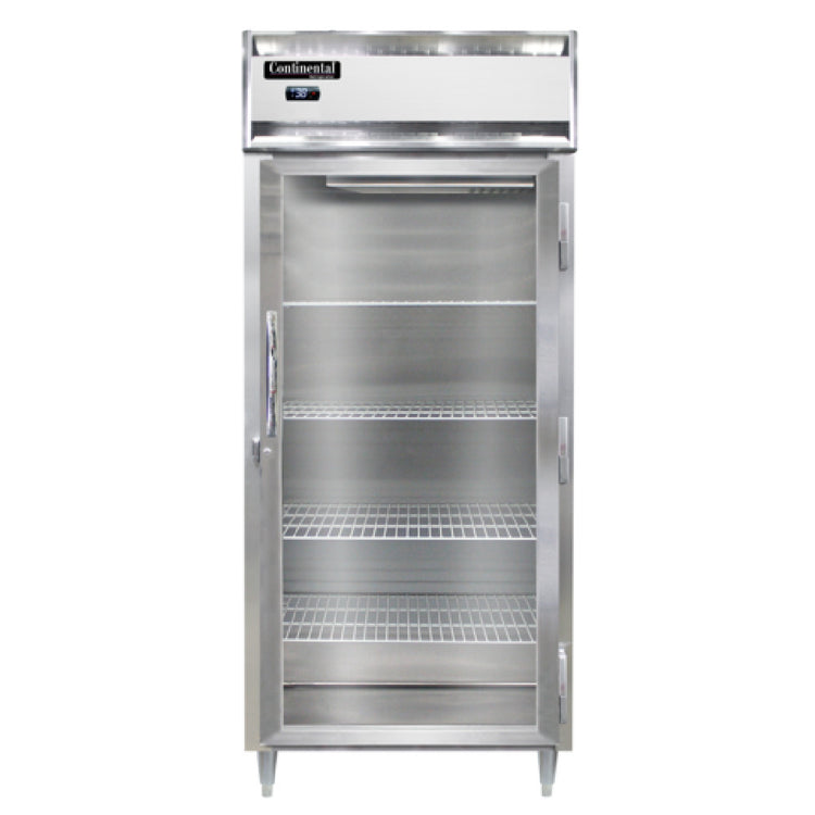 Continental Refrigerator, D1RXNSAPT-GD-SD, Designer Line Extra-Wide Refrigerator, 32 cu. ft. capacity, pass-thru, 36-1/4" wide one-section, self-contained refrigeration, standard depth cabinet, electronic controller with digital display, wide full-height glass door on front, wide full-height solid door on rear, stainless steel exterior, aluminum interior, 6" adjustable stainless steel legs, NEMA-5-15P, 1/3 HP, cETLus, NSF, Made in the USA