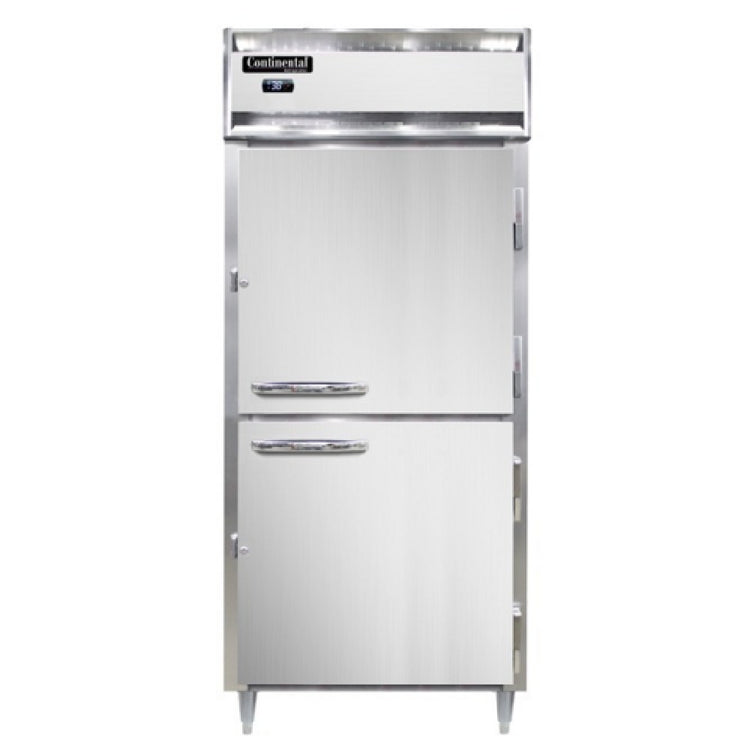 Continental Refrigerator, D1RXNSAPTHD-SD-GD, Designer Line Extra-Wide Refrigerator, 32 cu. ft. capacity, pass-thru, 36-1/4" wide one-section, self-contained refrigeration, standard depth cabinet, electronic controller with digital display, wide full-height solid door on front, wide full-height glass door on rear, stainless steel exterior, aluminum interior, 6" adjustable stainless steel legs, NEMA-5-15P, 1/3 HP, cETLus, NSF, Made in the USA