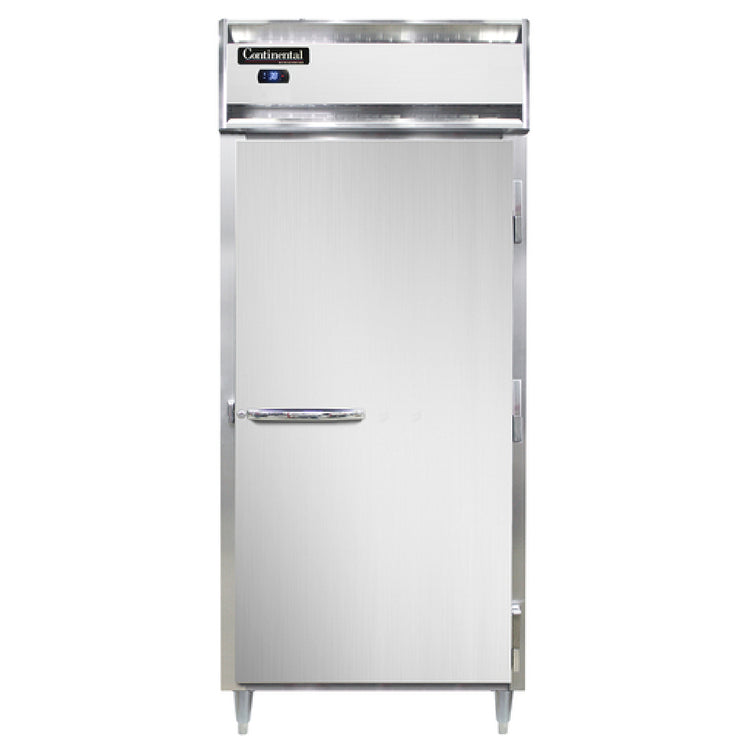 The Continental Refrigerator D1RXSN Designer Line Extra-Wide Refrigerator Reach-in is a versatile refrigeration solution, measuring 36-1/4 inches in width, ideal for businesses seeking efficient storage in limited spaces. This one-section unit boasts a self-contained refrigeration system, presenting a perfect blend of functionality and modern design. Constructed with an aluminum exterior and interior, complemented by a sleek stainless steel front, it ensures durability and ease of maintenance. The refrigerator features a shallow depth cabinet, which optimizes space without sacrificing storage capacity, and a wide full-height solid door equipped with a secure cylinder lock for added security. Its electronic control with a digital display provides easy temperature management, while the hi-low alarm helps maintain optimal storage conditions. Supported by 6-inch adjustable stainless steel legs, this refrigerator offers stability and flexibility in positioning. Utilizing the eco-friendly R290 hydrocarbon refrigerant and powered by a 1/3 HP compressor, it is energy-efficient and environmentally conscious. The Continental Refrigerator D1RXSN is cETLus and NSF certified, underscoring its adherence to quality and safety standards, making it an ideal choice for various industry segments, including restaurants, catering services, and food retail environments that require reliable and efficient refrigeration solutions.