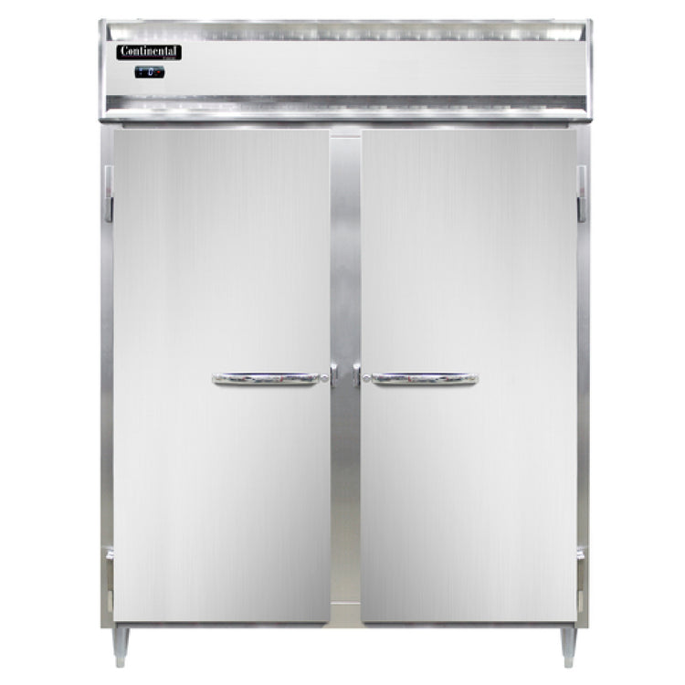 The Continental Refrigerator D2FEN Designer Line Wide Freezer Reach-in 57"W is a sophisticated refrigeration solution crafted for commercial settings requiring both functionality and design elegance. This two-section unit boasts a 57-inch width, providing ample space for storage, and is equipped with self-contained refrigeration to ensure efficiency and ease of maintenance. Constructed with a durable aluminum exterior and interior, complemented by a stainless steel front, it exudes durability and style. The freezer features wide full-height solid doors with cylinder locks, enhancing security. Its electronic control system with a digital display offers precise temperature management, accompanied by a hi-low alarm for added safety. The standard depth cabinet is supported by 6-inch stainless steel legs, ensuring stability. Utilizing R290 hydrocarbon refrigerant, the D2FEN aligns with eco-friendly practices while delivering powerful cooling with its 1 HP motor. Certified by cETLus and NSF, it meets industry standards for safety and sanitation. This freezer is an exemplary choice for foodservice operations that demand reliability, energy efficiency, and a sleek appearance, making it a preferred solution across various market segments within the industry.