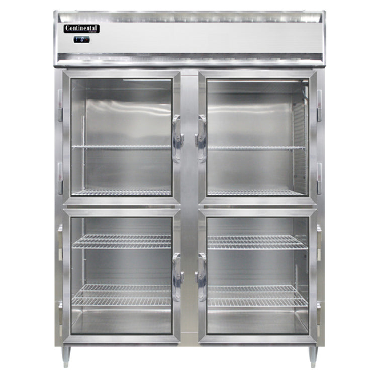 The Continental Refrigerator D2FENSSGDHD Designer Line Wide Freezer Reach-in 57"W is an advanced two-section cold storage unit tailored for commercial environments that require precise refrigeration solutions. This freezer boasts a self-contained refrigeration system, ensuring efficient and effective cooling performance. Crafted from durable stainless steel for both its exterior and interior, it promises longevity and resistance to wear, crucial for rigorous daily use in professional settings. Its standard depth cabinet is complemented by wide half-height glass doors, providing easy visibility and access while maintaining the internal temperature. Security is enhanced with cylinder locks, ideal for environments where controlled access is necessary. The electronic control system, featuring a digital display and hi-low alarm, offers straightforward and reliable temperature management, ensuring products are kept at optimal conditions. Supported by 6" stainless steel legs, this freezer maintains stability and ease of cleaning beneath the unit. Utilizing R290 hydrocarbon refrigerant, it aligns with eco-friendly standards, while the 1 HP compressor delivers robust cooling power. Certified by cETLus and NSF, this freezer meets stringent safety and sanitation standards, making it a dependable choice for various industry segments such as foodservice, hospitality, and retail that demand superior refrigeration solutions.