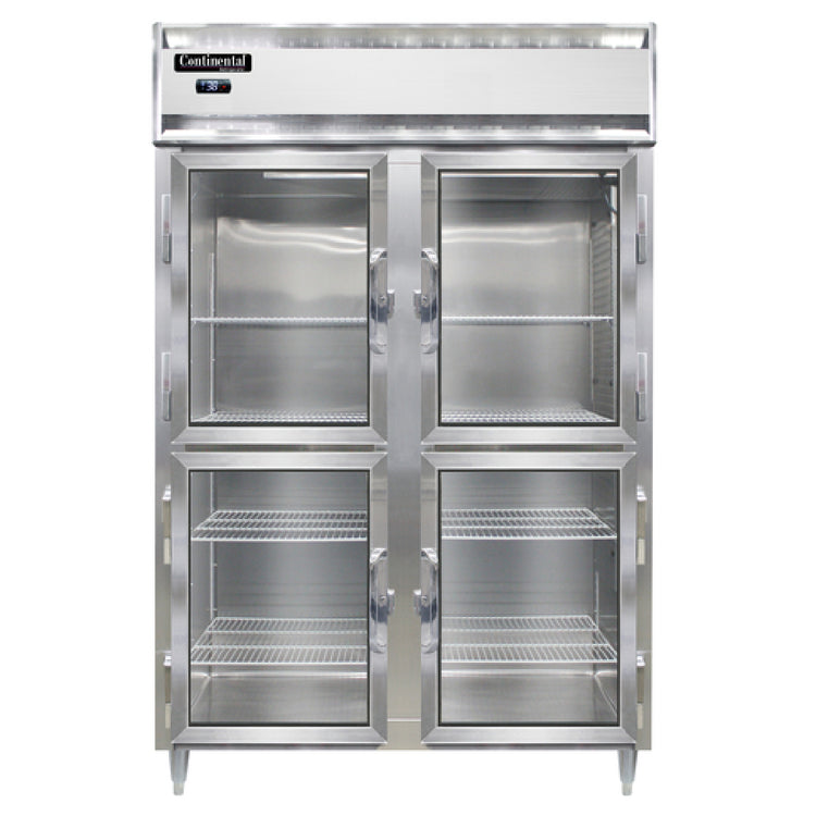 Continental Refrigerator D2RNGDHD Designer Line Refrigerator is a cutting-edge solution for commercial refrigeration needs, featuring a reach-in, two-section design tailored for efficiency and functionality. This refrigerator boasts a self-contained refrigeration system with a robust aluminum exterior and interior complemented by a sleek stainless steel front, ensuring durability and aesthetic appeal. The standard depth cabinet is equipped with half-height glass doors, providing easy visibility and access to stored items. For added security, cylinder locks are integrated into the design. The electronic control with a digital display offers precise temperature management, coupled with a hi-low alarm for enhanced operational safety. The unit stands on 6-inch stainless steel legs, allowing for stability and ease of cleaning beneath the appliance. Utilizing R290 hydrocarbon refrigerant, it operates with a 1/3 HP motor, ensuring energy efficiency and compliance with environmental standards. Certified by cETLus and NSF, this refrigerator meets rigorous safety and sanitation standards, making it ideal for various sectors within the food service industry, including restaurants, hotels, and catering businesses. The Continental Refrigerator D2RNGDHD is a valuable asset for those seeking reliable refrigeration with superior design and performance.