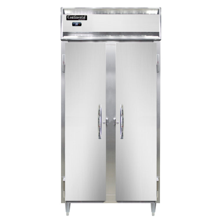 The Continental Refrigerator D2RSEN Designer Slim Line Refrigerator Reach-in 36-1/4"W is a meticulously engineered appliance designed to meet the diverse needs of modern commercial kitchens. This two-section unit features a self-contained refrigeration system, ensuring optimal cooling efficiency. Its aluminum exterior and interior provide both durability and lightweight benefits, while the stainless steel front adds a sleek and modern aesthetic. One of the standout features is its narrow full-height stainless steel doors equipped with cylinder locks, offering security and ease of access. The electronic control with a digital display allows for precise temperature management and includes a hi-low alarm for added safety. The unit stands on 6" stainless steel legs, providing stability and ease of cleaning beneath. Utilizing R290 hydrocarbon refrigerant, it is environmentally friendly and efficient. Powered by a 1/3 HP compressor, this refrigerator meets cETLus and NSF certifications, ensuring it adheres to strict safety and sanitation standards. With its standard depth cabinet design, this refrigerator is ideal for establishments that require reliable and space-saving refrigeration solutions without compromising on performance. Whether for restaurants, catering services, or institutional kitchens, the Continental Refrigerator D2RSEN combines functionality with a sophisticated design.