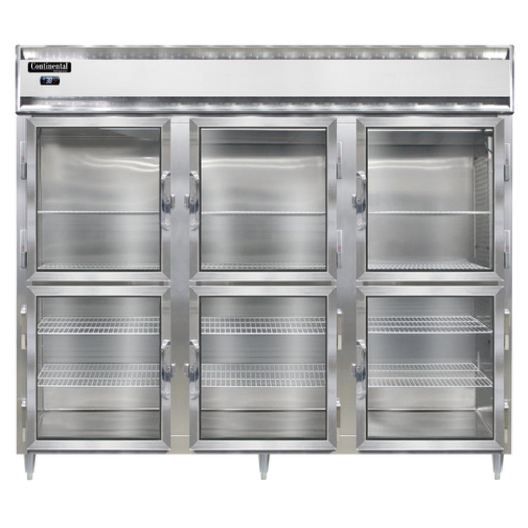 The Continental Refrigerator D3RENGDHD Designer Line Wide Refrigerator Reach-in 85-1/5"W is engineered for commercial environments that demand both performance and aesthetics. This three-section, self-contained refrigeration unit features a robust aluminum exterior and interior, complemented by a sleek stainless steel front, ensuring durability and an elegant appearance. The unit's wide half-height glass doors, equipped with cylinder locks, offer security and easy visibility of contents, making it ideal for high-traffic food service establishments. The D3RENGDHD includes advanced electronic control with a digital display and a hi-low alarm, ensuring precise temperature management and operational safety. Standing on sturdy 6" stainless steel legs, this reach-in refrigerator employs R290 Hydrocarbon refrigerant, which is known for its environmentally friendly and energy-efficient properties. With a 1/2 HP motor, this unit meets cETLus and NSF standards, underscoring its compliance with North American safety and sanitation requirements. The standard depth cabinet is designed for optimal space utilization, catering to the diverse storage needs of restaurants, cafes, and catering businesses. The Continental Refrigerator D3RENGDHD is a versatile and reliable choice, offering a superior blend of functionality and style for various segments within the food service industry.