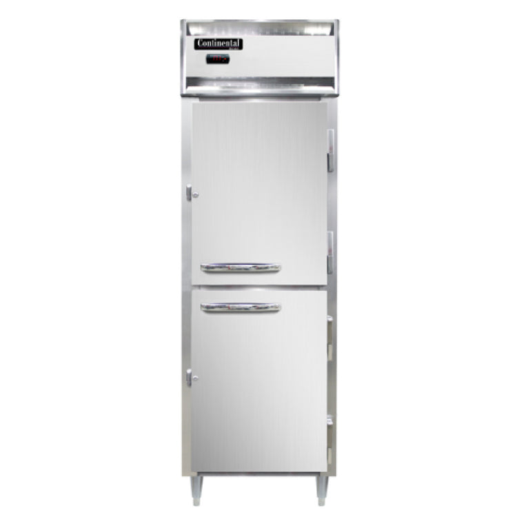 Continental Refrigerator, DL1W-SS-PT-HD-SD-GD, Designer Line Heated Cabinet, 21 cubic ft. capacity, pass-thru, one-section, stainless steel exterior & interior, standard depth cabinet, half-height stainless steel doors on front, half-height glass doors on rear, with electronic controller w/ digital display, NEMA-5-15P, cETLus, NSF, Made in the USA