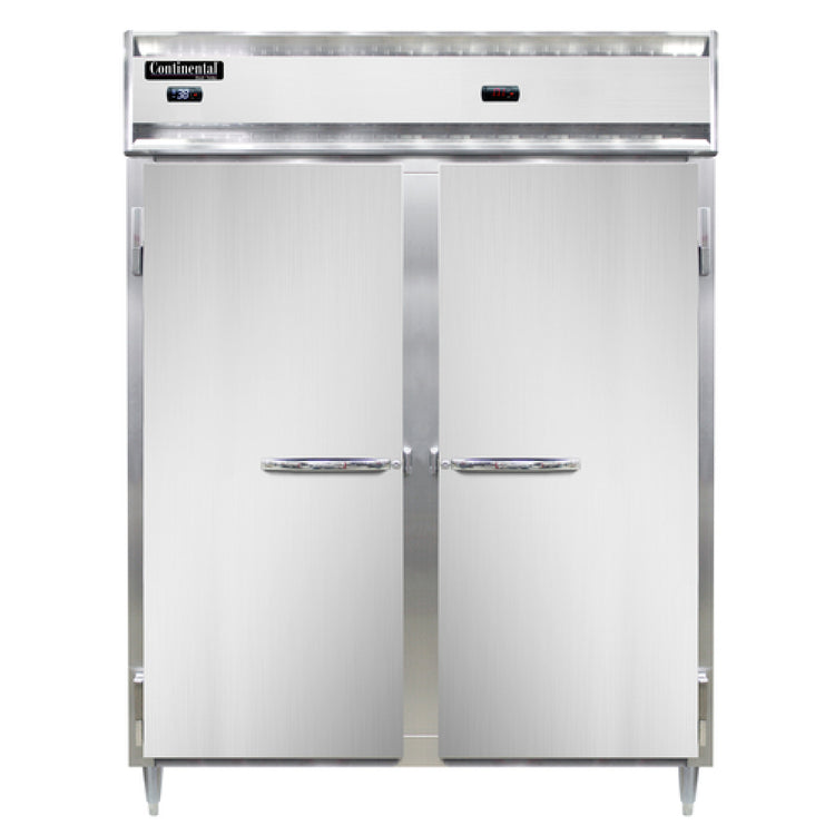 The Continental Refrigerator DL2RWE Designer Line Refrigerator/Heated Cabinet Reach-in is a versatile two-section unit that merges refrigeration and heating functionalities, tailored for varied commercial applications. With a width of 57 inches, this self-contained refrigeration system is equipped with both aluminum exterior and interior, complemented by a stainless steel front and doors, ensuring durability and hygiene. The cabinet maintains a standard depth, featuring wide full-height doors for easy access. A standout feature is its electronic control system with a digital display, offering precise regulation of the internal environment. It is supported by a high-low alarm system for added security. The refrigerator operates with a 1/4 horsepower unit, demonstrating efficient energy usage. Certified by cETLus and NSF, this unit adheres to rigorous safety and sanitation standards. The Continental Refrigerator DL2RWE is an ideal solution for commercial kitchens, catering to different segments within the food service industry, including restaurants, hotels, and catering businesses, providing dependable, dual-function storage to maintain diverse culinary preparations at optimal temperatures. Its blend of reliable technology and robust construction underlines its value proposition, making it an excellent choice for establishments needing both refrigeration and heated storage in one compact design.